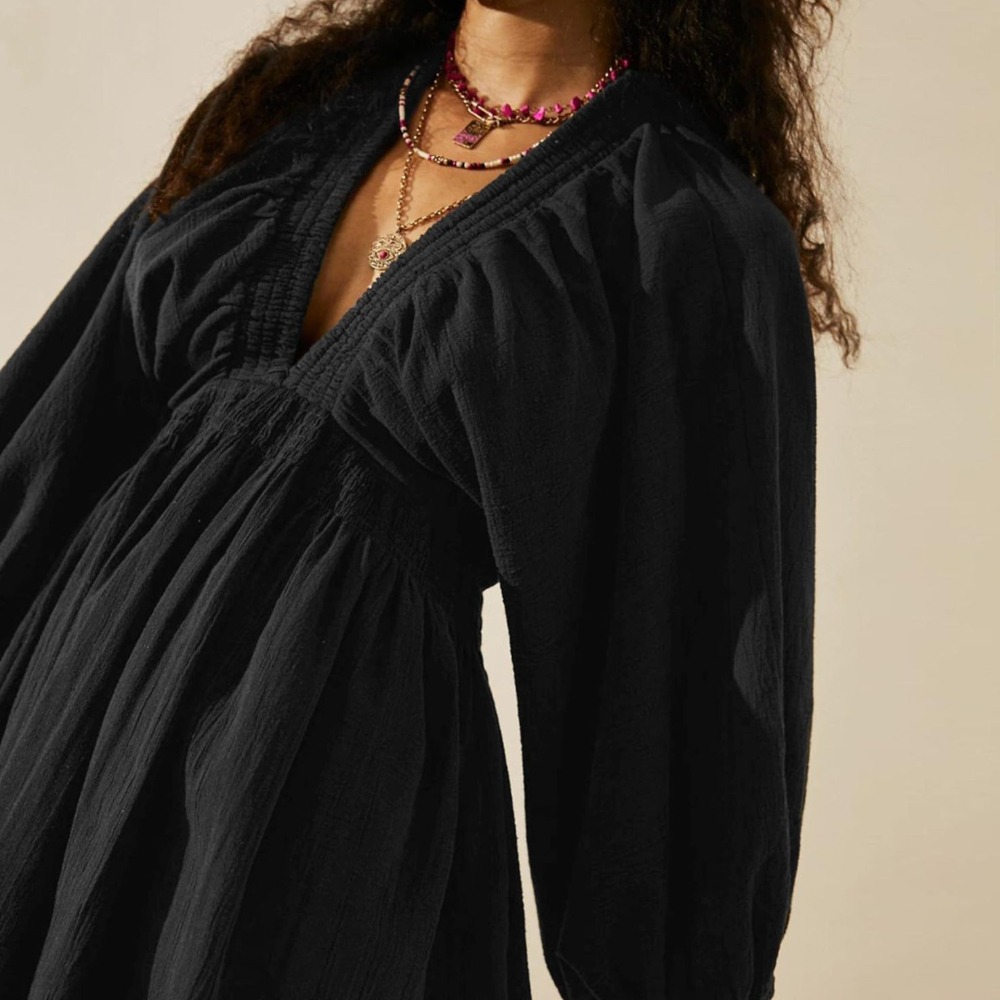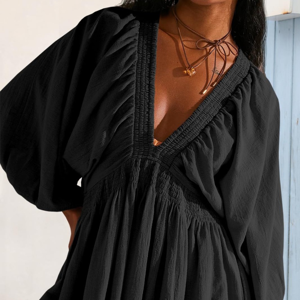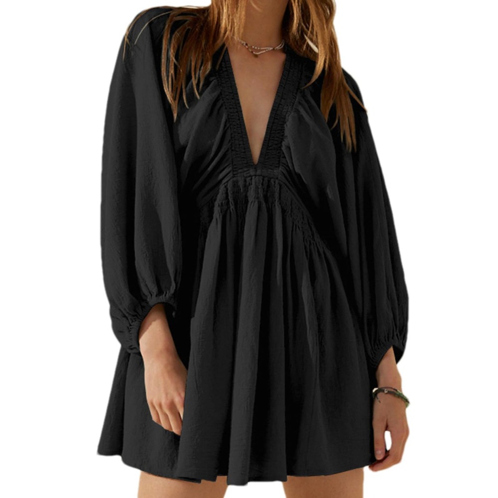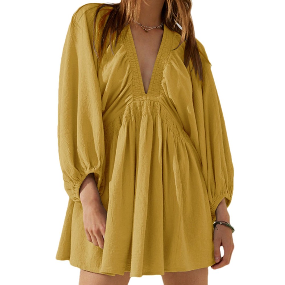 【产品】这款女式v领长袖褶裥a字沙滩迷你裙是时尚与舒适的完美结合。这款多功能的单品旨在让你看起来毫不费力地时髦,无论你是沿着海岸线漫步还是享受休闲的一天。将讨人喜欢的轮廓与时尚的细节相结合,这条裙子是你夏天衣橱里的必备之选 【讨人喜欢的v型领口&长袖】经典的v型领口拉长了脖子,为你的造型增添了一丝优雅。它巧妙地突出了你的锁骨,创造了女性化和诱人的吸引力。长袖提供额外的覆盖,使其成为凉爽的海滩夜晚或白天防晒的理想选择。袖子的设计轻松舒适,确保您可以自由移动,同时保持时尚的外观 【迷人的褶皱细节】精致的褶皱点缀,为您的着装带来动感和质感。从腰部垂下的褶皱,在你走路的时候创造出一个充满活力和引人注目的效果。它们不仅增加了视觉上的乐趣,而且还有助于裙子的讨人喜欢的a字形状,掠过你的曲线,轻轻地向下摆伸展,以增强身材 【a字沙滩迷你裙】这款裙的a字裙廓形非常讨人喜欢,紧贴上身,并逐渐向下摆延伸,创造出平衡和显瘦的效果。在沙滩上穿迷你裙再合适不过了,既能让你展示美腿,又能让你看起来俏皮又时尚。无论你是搭配凉鞋来营造一种悠闲的氛围,还是搭配坡跟鞋去参加海边晚宴,a字裙的设计都能让你看起来毫不费力地时尚 【优质透气面料】由优质轻质面料制成,这款连衣裙具有出色的透气性和舒适性,是炎热夏日的必备之选。这种材料对皮肤柔软,褶皱美观,提供舒适的适合与你一起移动。它也很耐用,易于护理,即使多次洗涤也能保持它的形状和颜色。质量和舒适的结合使这件衣服适合整天穿着 【适合任何场合】这件v领长袖褶裥a字沙滩迷你裙非常百搭。你可以把它当做沙滩外套,白天的休闲连衣裙,或者搭配一些配饰参加晚上的聚会。它永恒的设计和讨人喜欢的剪裁使它适合各种夏季活动,从海滩度假、野餐到户外派对。它也是送给时尚朋友或家人的绝佳礼物。不要错过现在的订单,拥抱一个既时尚又适合海滩的造型