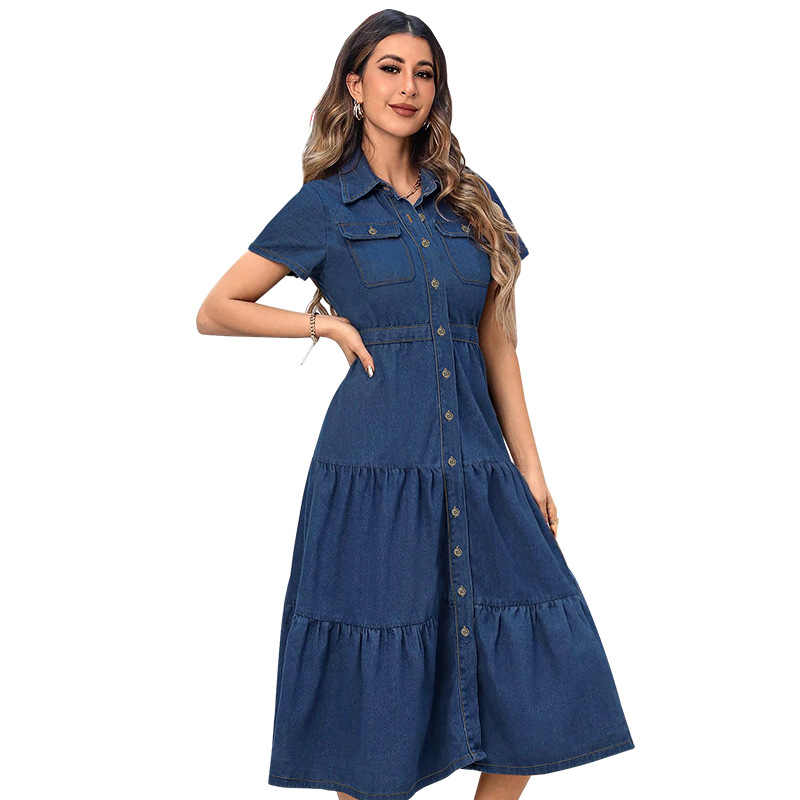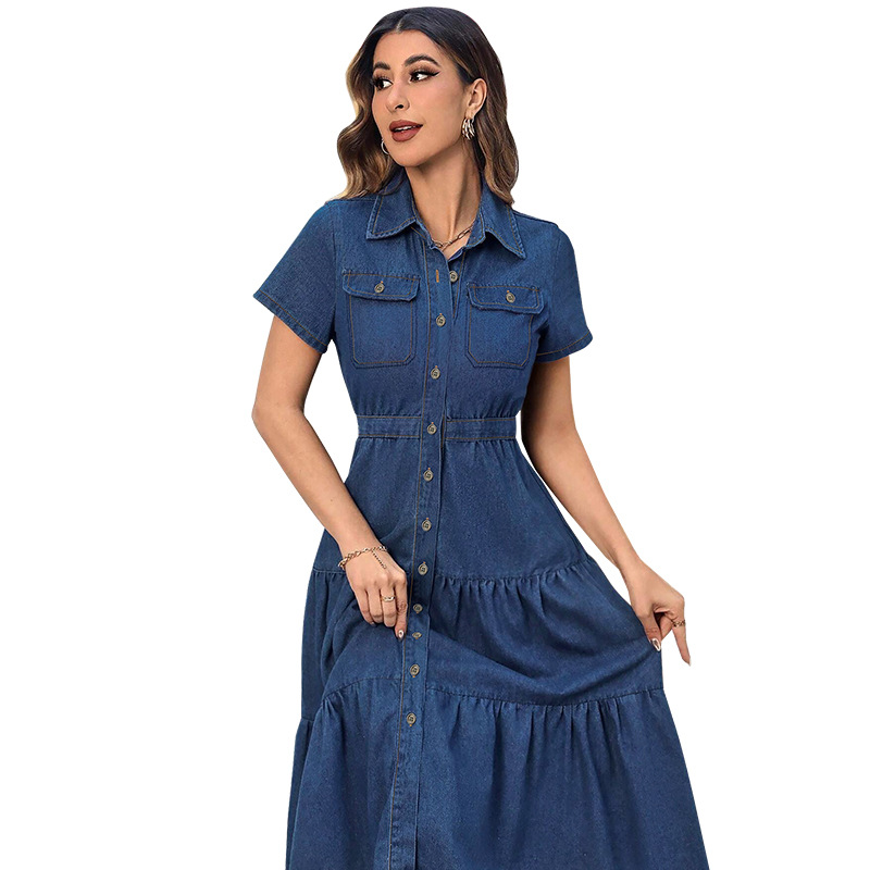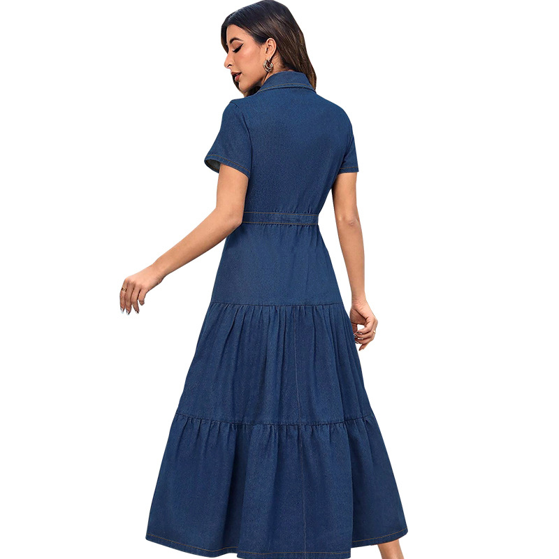 About this item 【PRODUCT】Step into contemporary style with our New Women's Denim Lapel Short-Sleeve Belted Cardigan Maxi Dress, a versatile piece that seamlessly merges casual charm with sophisticated design. Crafted for fashion-forward individuals, this dress combines the rugged appeal of denim with flattering details, making it perfect for everything from daytime outings to evening events 【CHIC DENIM LAPEL & SHORT-SLEEVE DESIGN】The dress features a classic denim lapel collar that adds a touch of timeless elegance, reminiscent of traditional denim jackets. The short sleeves offer a relaxed, summer-ready look while providing comfortable coverage. The combination of the lapel and sleeves creates a balanced silhouette, blending modern and vintage aesthetics for a unique, eye-catching appearance 【FLATTERING BELTED WAIST】The gathered fabric around the waist adds texture and dimension, making the dress both stylish and figure-flattering 【LONGLINE CARDIGAN-INSPIRED SILHOUETTE】With its extended length, this dress takes inspiration from cardigan styles, offering a flowing, elegant look that drapes beautifully over the body. The longline silhouette creates an elongated effect, making it suitable for various body types. Whether you pair it with heels for a dressed-up look or sneakers for a casual vibe, the maxi length adds sophistication to any outfit 【PREMIUM QUALITY DENIM FABRIC】Made from high-quality denim, this dress ensures durability and comfort. The fabric is soft, breathable, and has just the right amount of stretch for easy movement. The denim's quality construction resists fading and maintains its shape, even after multiple washes. Its lightweight feel makes it ideal for transitional seasons, providing warmth without bulk 【PERFECT FOR ANY OCCASION】This Denim Lapel Short-Sleeve Belted Cardigan Maxi Dress is incredibly versatile. Wear it open as a lightweight cover-up over a tank top and shorts for a beach day, or button it up and accessorize with jewelry for a dinner date. It’s also suitable for casual Fridays at work or weekend brunches. The dress makes a great gift for fashion enthusiasts. Upgrade your wardrobe today—order now and embrace a look that’s both trendy and timeless