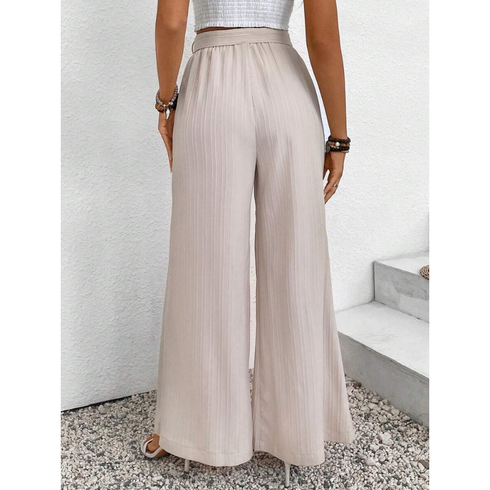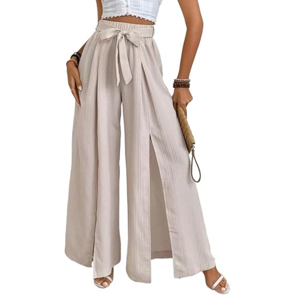 Women's Summer High Waisted Wide Leg Pants with Adjustable Tie Solid Color Loose Fit Versatile Side Slit Pants Flowy Business Work to Casual Pants Fall Trendy Essentials