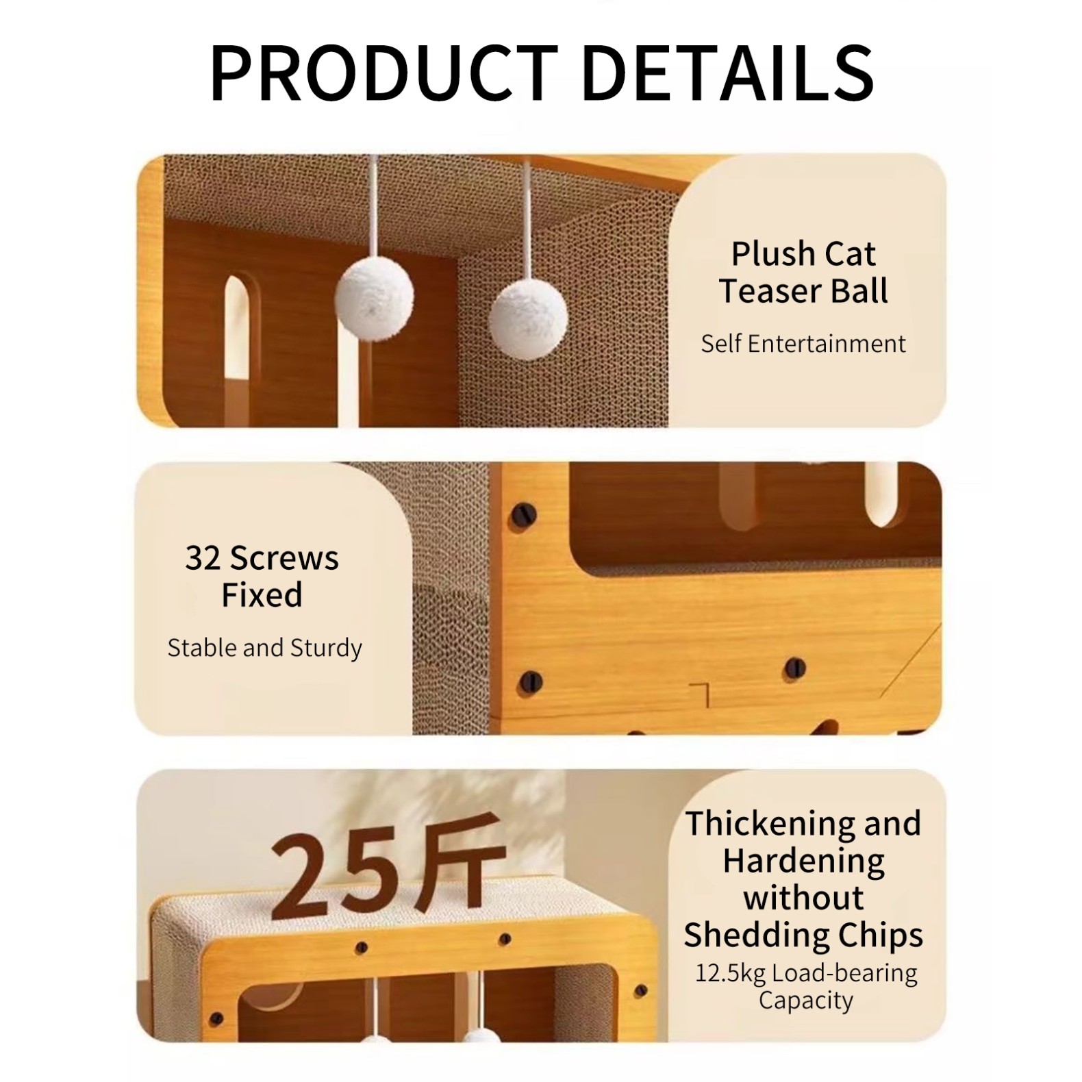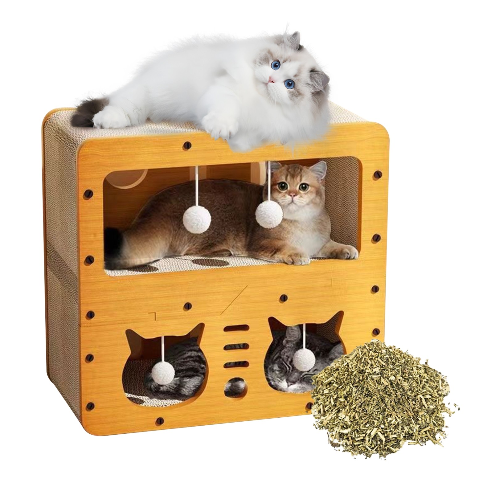 您的猫咪可以在我们的猫抓板上尽情玩耍,我们的猫抓板集抓挠、休息和藏匿功能于一体,其设计允许猫咪水平或垂直抓挠,而额外的空间则为猫咪提供了休息和藏匿的场所。 我们的猫抓洞和猫窝采用环保、无毒、无味的材料制成,确保您宠物的安全和健康。优质瓦楞纸板经久耐用,可提供坚固耐用的抓挠表面