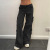 辣妹炸街直筒休闲裤美式街头复古风不规则大口袋宽腰带设计牛仔裤