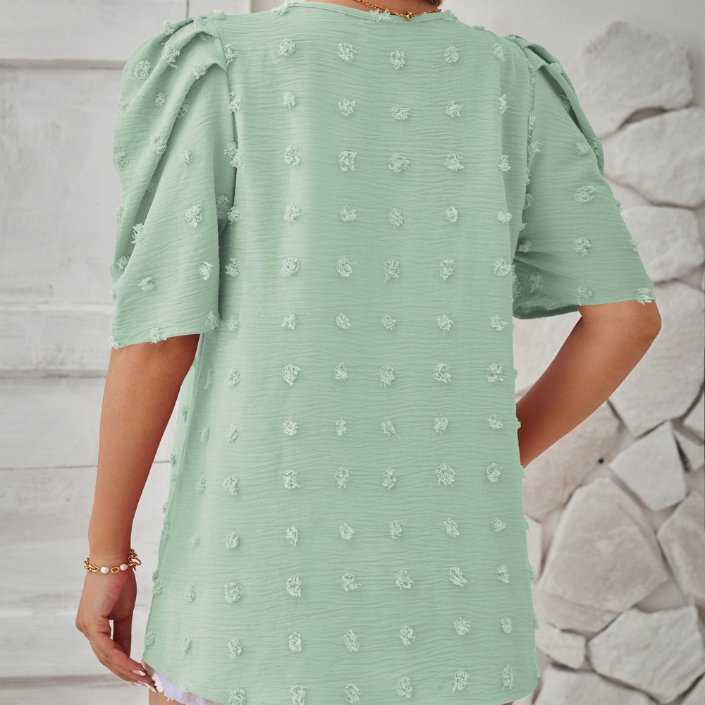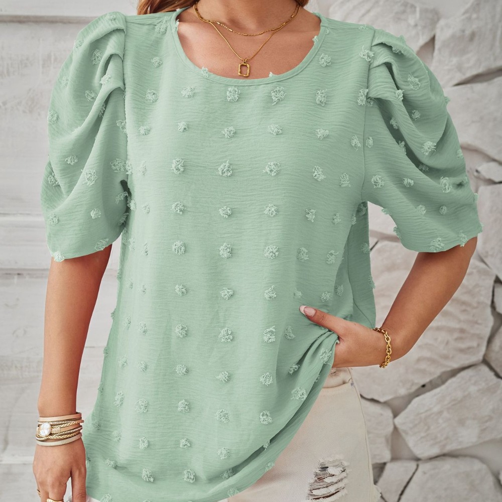 Short-Sleeve Square Neck Bubble Crochet 5/8 Sleeve Pullover New Loose Fit Top Chic & Effortless