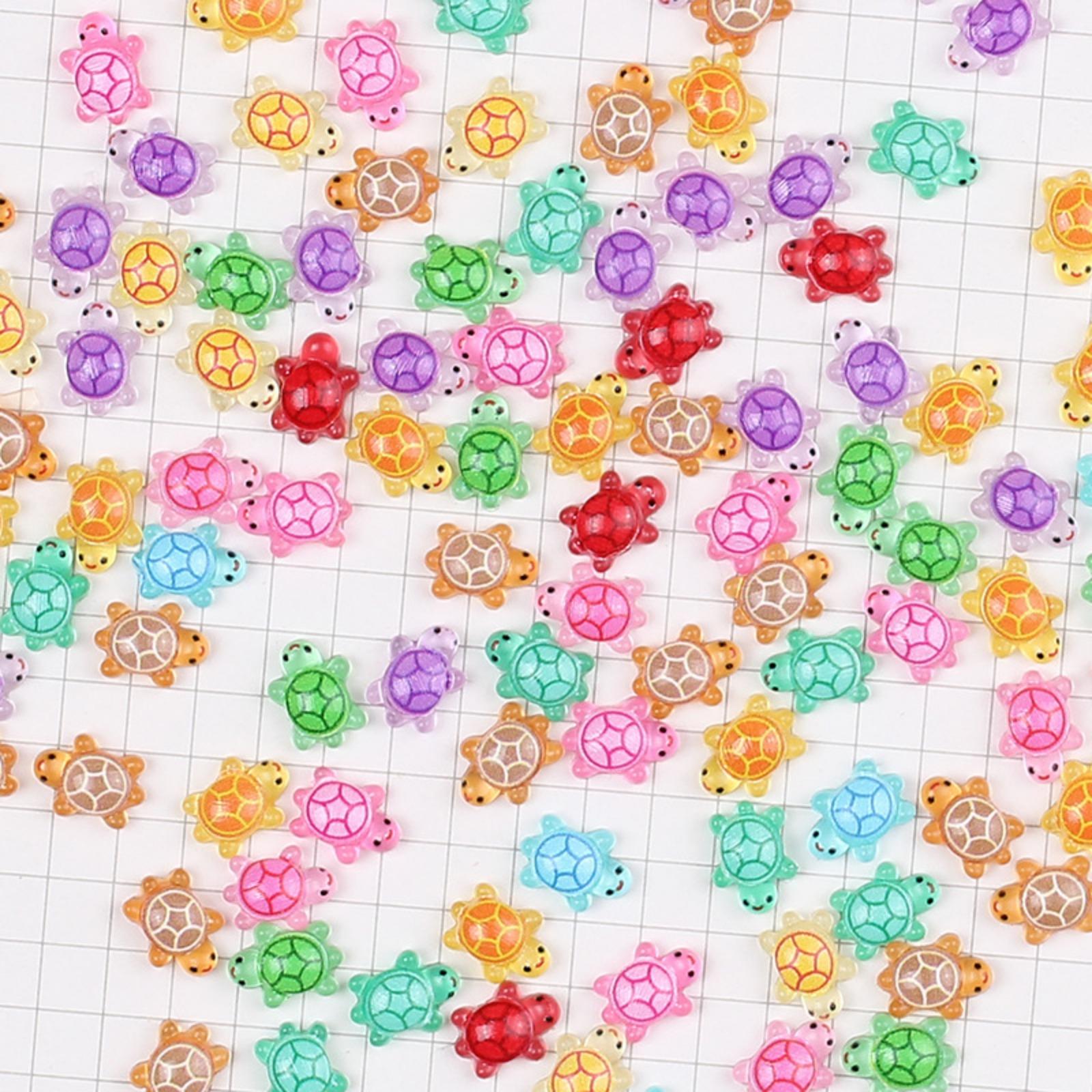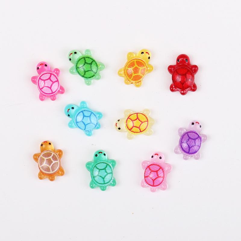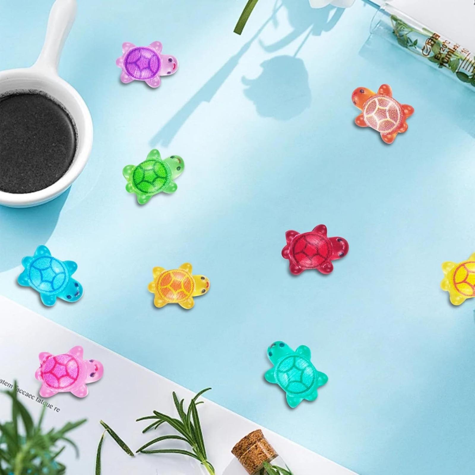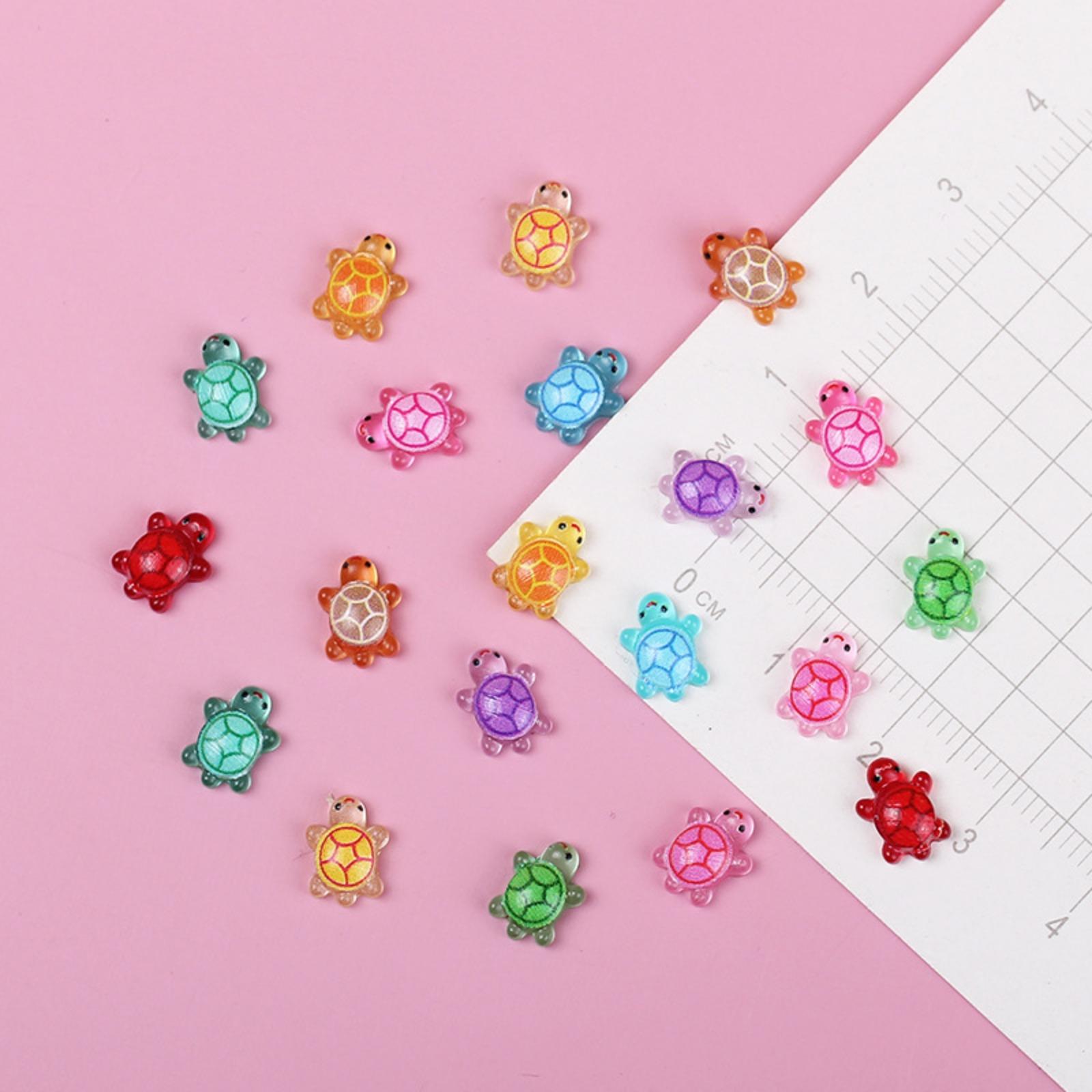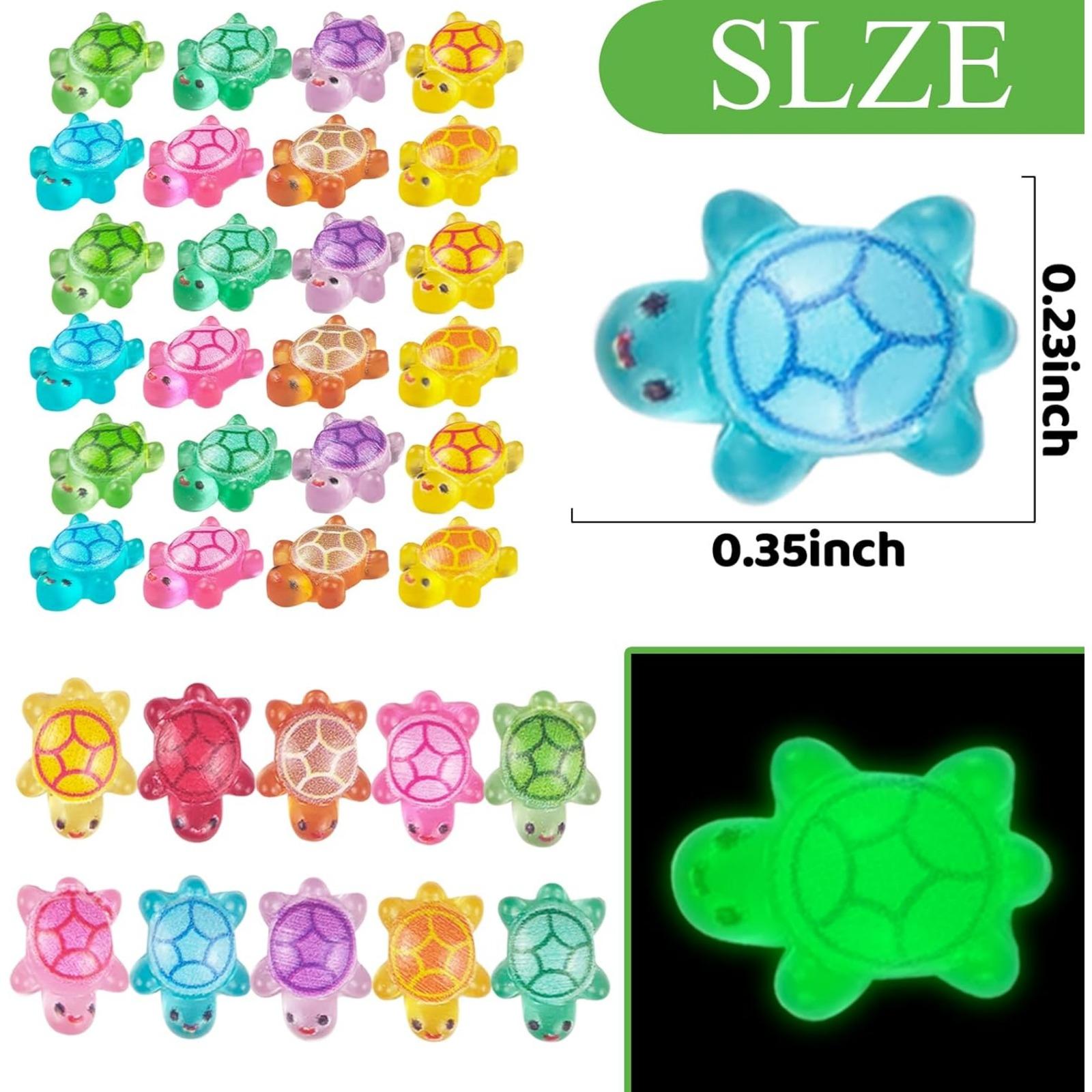 HIGH QUALITY - Made from smooth, bright, and lightweight resin, these mini resin turtles are designed to last while providing a sparkly and appealing look that will catch everyone's attention. LUMINOUS EFFECT - Our miniature turtles have a variety of colors and styles, with clear texture and flashing, which provides a luminous effect. By absorbing light during the day, it can shine very vivid and realistic in the darkness and creating a stunning visual effect that enhances any nighttime display. WIDE APPLICATION - Ideal for a wide range of uses including flower pots, Christmas fairy tale gardens, nail art, and party favors; these cute little turtles make excellent additions to goodie bags!