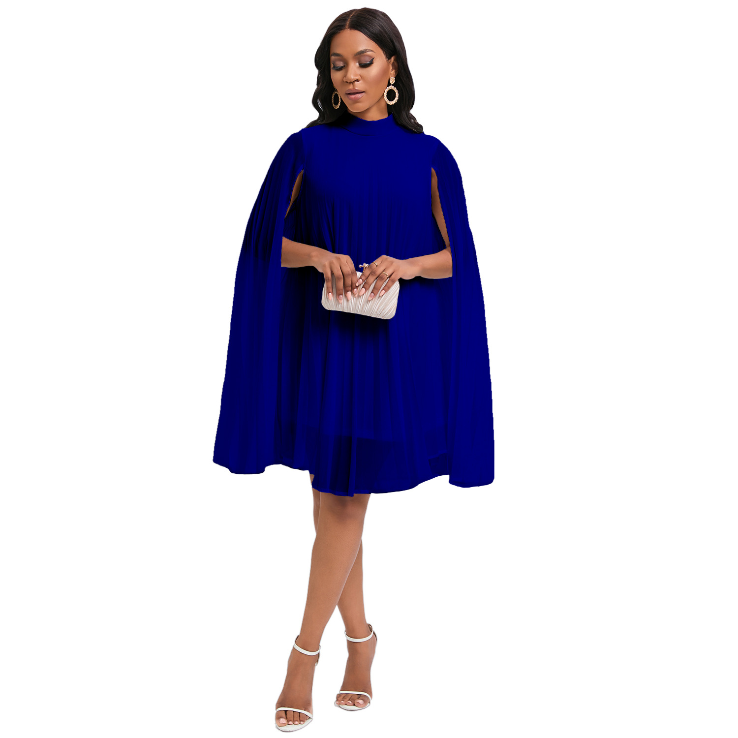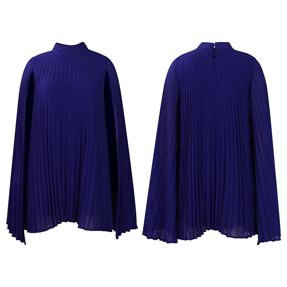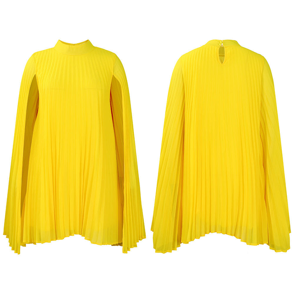 外贸女装2023新款气质时尚雪纺套头斗篷蝙蝠袖大码跨境连衣裙