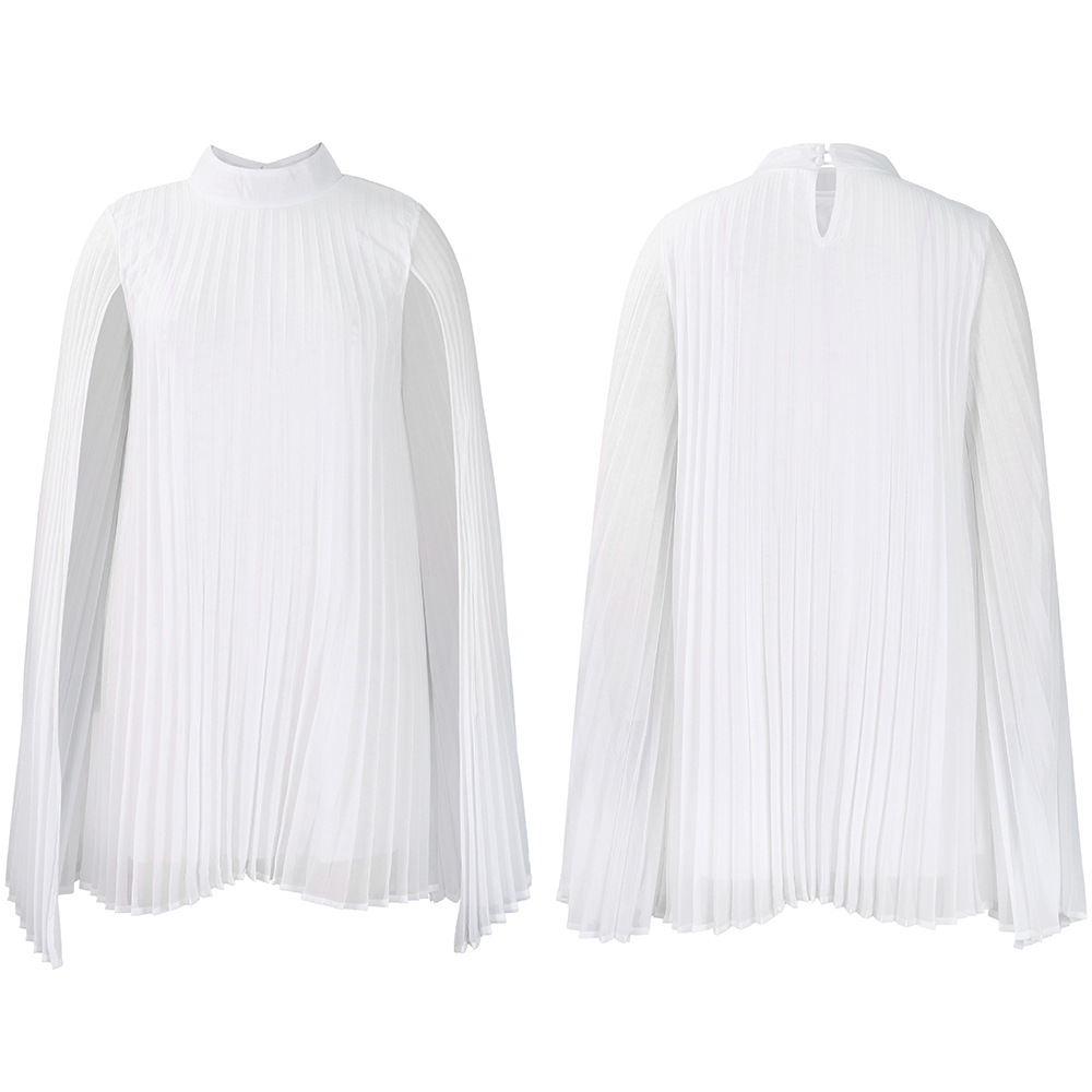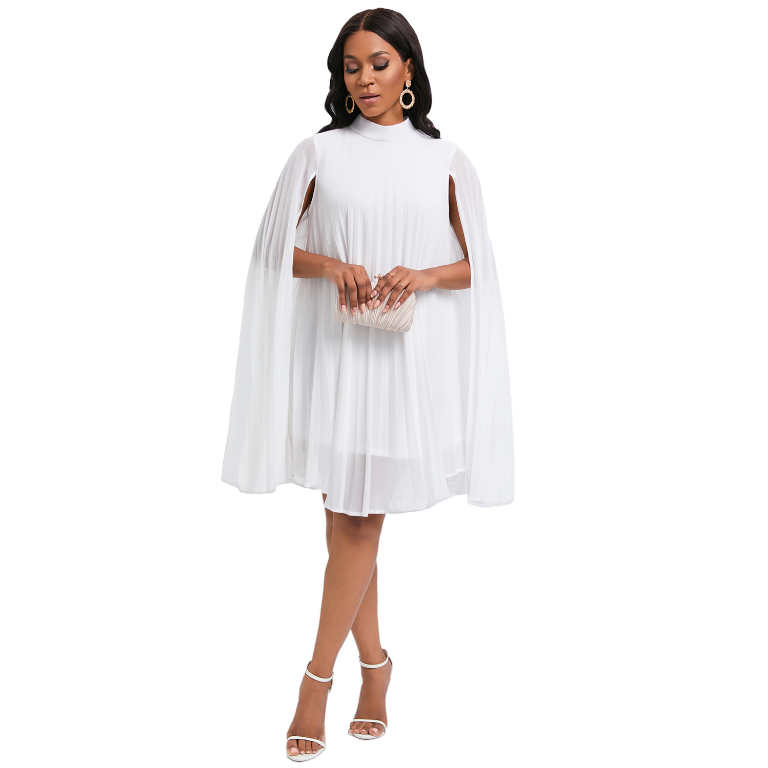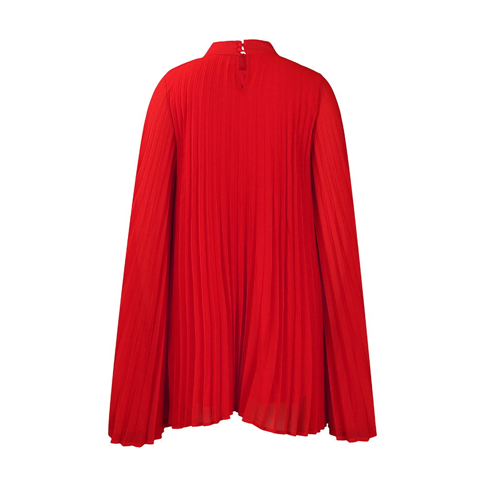 外贸女装2023新款气质时尚雪纺套头斗篷蝙蝠袖大码跨境连衣裙