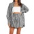 春夏气质通勤休闲套装时尚女式衬衫条纹长袖两件套