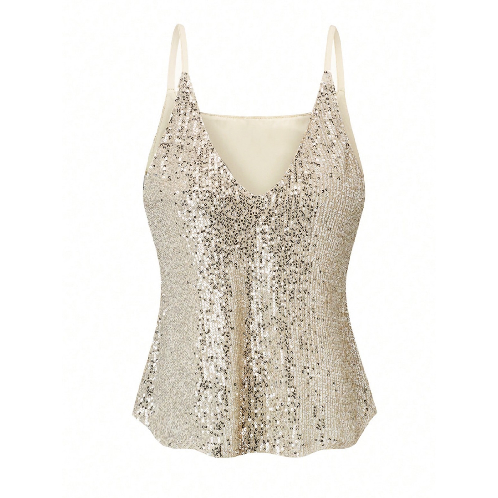 Women's Sequin V-Neck Sleeveless Cami Top - Sexy Sparkly Party Tank for Night Out & Special Occasions
