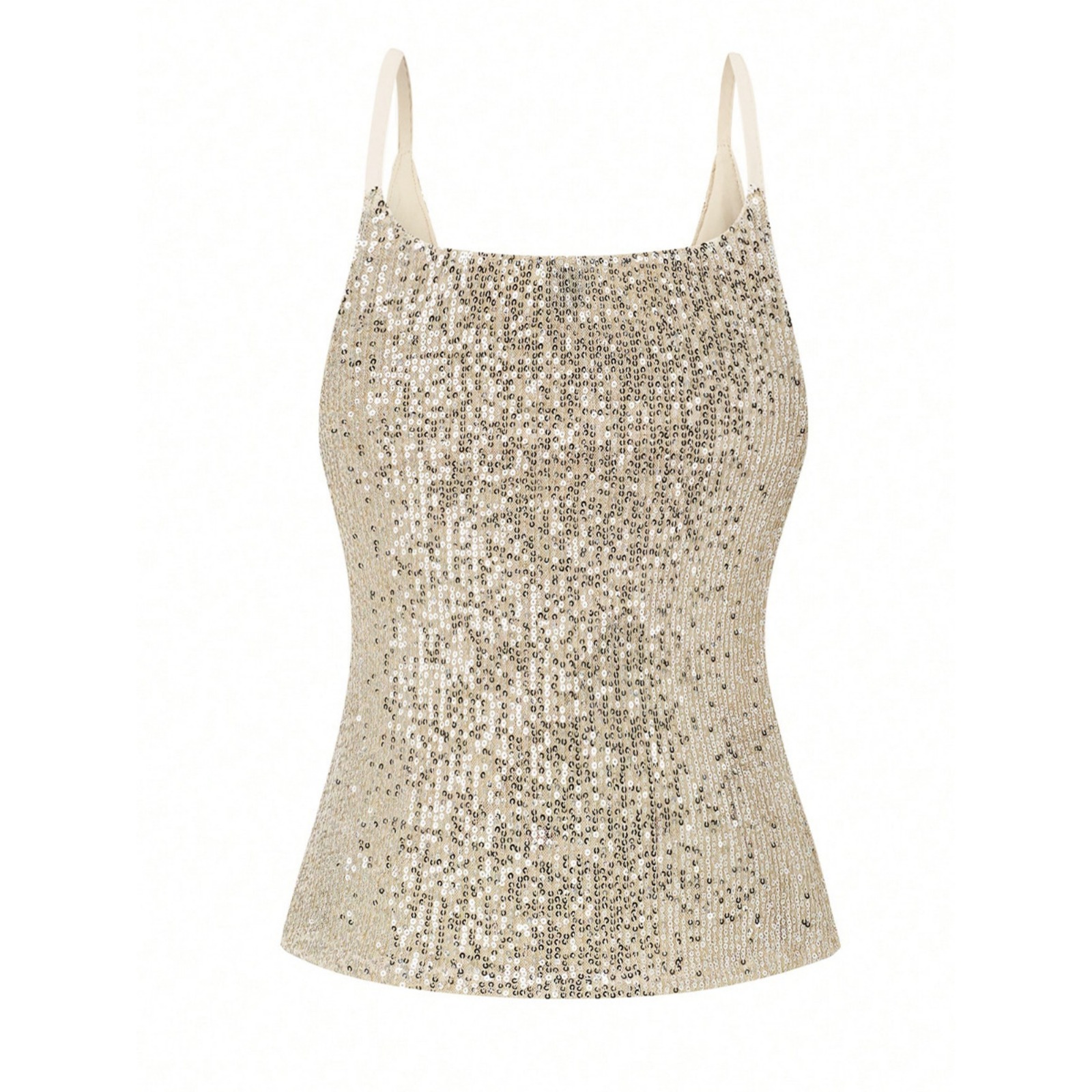 This dazzling camisole features full-coverage sequin embellishments that create mesmerizing light reflections, perfect for evening events and parties. The intricate beadwork maintains its brilliance throughout wear.