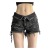 美式街头风复古洗水黑色毛边牛仔短裤女跨境翻边腰头绑带辣妹热裤