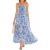 Women's Blue Floral Maxi Dress Adjustable Tie Front Ruffle Hem Beach Sundress with Pockets Lightweight Polyester Viscose Boho Dress