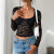 迪芸外贸2025春夏新款 欧美y2k性感风修身镂空长袖系带蕾丝衫上衣