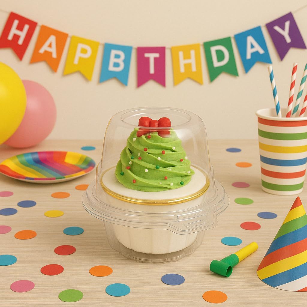 50 Pcs Individual Cupcake Containers, Clear Plastic Cupcake Holders with Lids, Spacious 3" Design for Frosted Cupcakes, Stackable & Reusable for Parties, Baking, Picnics