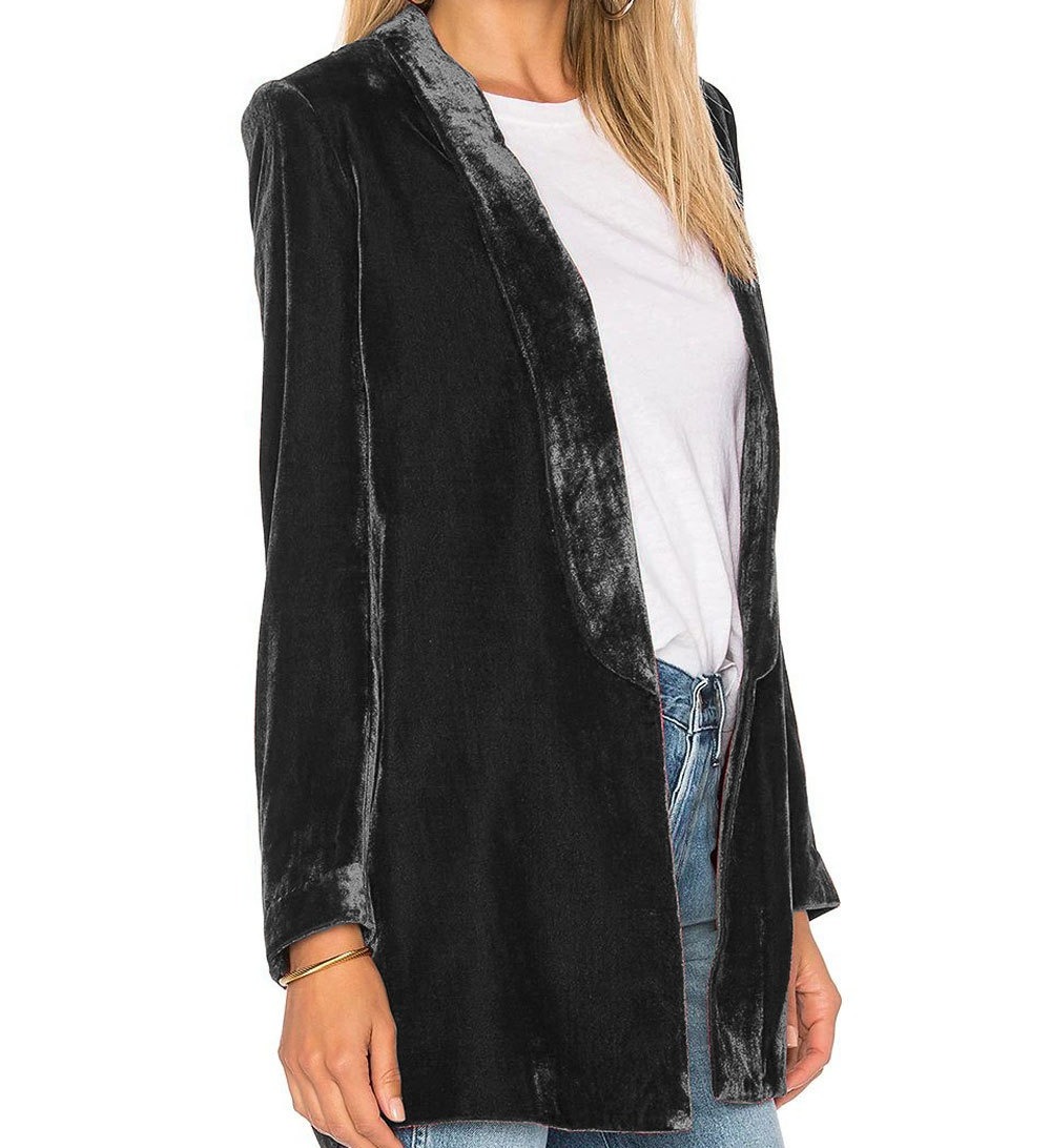 【奢华遇上现代极简主义】 提升你的衣橱与我们的新到来的欧美风格天鹅绒运动上衣,一个声明的作品,无缝地融合了富裕和现代风格。由华丽的天鹅绒面料制作而成,这件夹克散发着奢华的光泽,同时保持着光滑、简约的轮廓。修身剪裁修饰了你的身材,精确地突出了曲线,而开放的设计增加了一种轻松、悠闲的氛围——无论是正式场合还是休闲出游都是完美的选择 【奢华舒适的高级天鹅绒】 由高品质的天鹅绒,这款运动夹克提供了一个毛绒,柔软的感觉对皮肤,使它的乐趣穿一整天。织物的密集绒毛提供了丰富,豪华的质感,而它的轻微拉伸确保舒适,灵活的适合。耐用的结构抗起球和保持其形状,确保夹克看起来抛光和优雅洗后。丝绒独特的捕捉光线的能力为任何服装增添了一丝魅力 【讨人喜欢的细节和功能】 修身的轮廓:剪裁适合你的曲线,创造一个复杂和女性化的外观。 简约设计:简洁的线条,精致的翻领,开放式的风格体现了现代的优雅。 百搭:宽松,开放的设计可以很容易地搭配衬衫,连衣裙或休闲t恤。 功能口袋:谨慎的侧口袋增加了实用性,同时又不牺牲夹克的时尚美感 【多种造型选择】 这件西装外套可以毫不费力地在不同的造型之间转换: 办公室时尚:在干净利落的白衬衫外面套上一层,配上剪裁考究的裤子和高跟鞋,这是一套优雅、专业的套装。 晚间魅力:披上一件鸡尾酒礼服,再配上珠宝和绑带凉鞋,打造一个迷人的夜晚。 休闲酷风:搭配图案t恤、牛仔裤和运动鞋,打造时髦的街头风格 【易保养、耐用】 专为持久穿着而设计,运动夹克可机洗(建议冷洗),多次洗涤后仍能保持其柔软、形状和奢华的光泽。追求舒适、时尚和多功能性的时尚前卫女性的理想选择,我们的天鹅绒运动夹克是你全年衣橱的必备单品