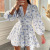 女装新款气质甜美印花v领蕾丝收腰短款连衣裙