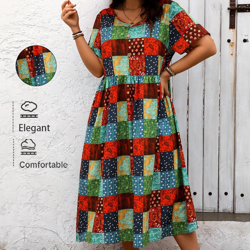 About this item 【EFFORTLESS SUMMER STYLE FOR EVERY BODY】 Step into warm-weather comfort with our Women's Summer Plus-Size Loose-Fit Round-Neck Printed Maxi Dress. Designed to celebrate all body types, this dress combines a relaxed, breezy silhouette with vibrant, eye-catching prints, making it a go-to for beach days, garden parties, or casual outings. The classic round neckline and full-length design offer a flattering, modest look, while the lightweight fabric ensures you stay cool and stylish throughout the season 【LIGHTWEIGHT, BREATHABLE FABRIC】 Crafted from premium, ultra-lightweight material, this dress is perfect for summer heat. The soft, breathable fabric drapes gently over the body, allowing air to circulate and preventing overheating. With a slight stretch for added comfort, it moves with you whether you’re walking, sitting, or dancing. The durable construction resists wrinkling and fading, ensuring the dress maintains its shape and the bold prints stay vivid wash after wash 【FLATTERING DETAILS & FUNCTIONALITY】 Loose-Fit Silhouette: The roomy, oversized cut skims over curves, providing a comfortable and flattering fit for plus-size figures. Round-Neck Design: The classic round neckline frames the face beautifully and offers a timeless, elegant look. Vibrant Prints: Choose from a variety of bold patterns, including tropical florals, geometric designs, or bohemian motifs, to express your unique style. Maxi Length: The floor-length hem creates a dramatic, flowing effect, perfect for pairing with sandals, wedges, or espadrilles. Adjustable Features: Some styles may include an elasticized waist or drawstring for a customizable fit 【VERSATILE STYLING OPTIONS】 This dress effortlessly transitions between looks: Beach Ready: Pair with a wide-brimmed hat, oversized sunglasses, and flip flops for a laid-back beach vacation outfit. Casual Day Out: Layer with a denim jacket, add sneakers, and carry a crossbody bag for a trendy, everyday ensemble. Evening Elegance: Accessorize with statement jewelry, strappy heels, and a clutch for a sophisticated dinner or evening event 【EASY CARE & DURABLE QUALITY】 Designed for long-lasting wear, the dress is machine washable and retains its softness, shape, and print vibrancy after repeated washes. Ideal for fashion-forward women seeking comfort, style, and inclusive sizing, our plus-size loose-fit printed maxi dress is a must-have addition to your summer wardrobe