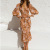V-Neck Printed Long-Sleeve Wrap Dress Tie-Waist Bodycon Midi Dress for Women