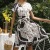 夏季印花系带收腰短袖连衣裙
