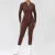 半开拉链长袖外穿健身瑜伽连体服女露背紧身运动连体衣