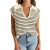 跨境欧美女装亚马逊2025夏季新款V领针织上衣休闲条纹翻领毛衣