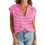 跨境欧美女装亚马逊2025夏季新款V领针织上衣休闲条纹翻领毛衣
