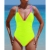 女性单件2025腹部控制泳衣霓虹色块泳装深V领修身泳衣