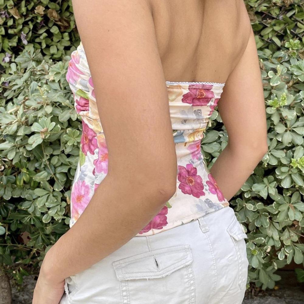 Women Floral Printed Strapless Tops Summer Tops 2025