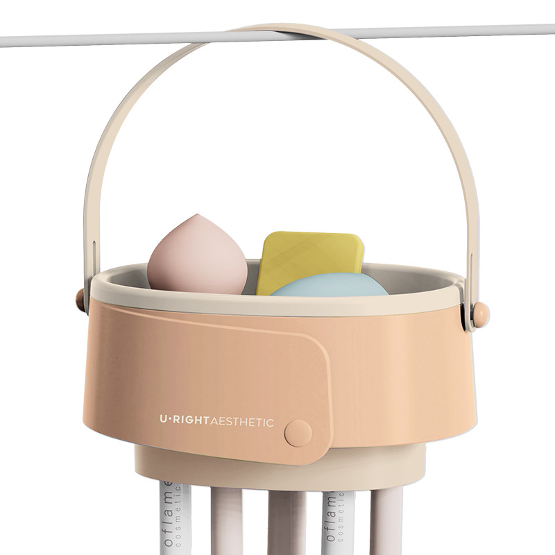 Foldable Makeup Brush Organizer Portable Cosmetic Storage Box with Handle Hanging Beauty Sponge Holder TPR+PP Material 16.2×11.7×7.5cm
