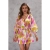 Women's Summer Boho Mini Dress Print Drawstring V Neck 3/4 Sleeve Button Down Shirt Dress Casual Lightweight Trendy Flowy A-Line Sundresses for Beach Vacation