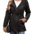 Women's Cotton Hooded Zip-Up Trench Coat Loose-Fit Solid Color Windbreaker with Waist Drawstring