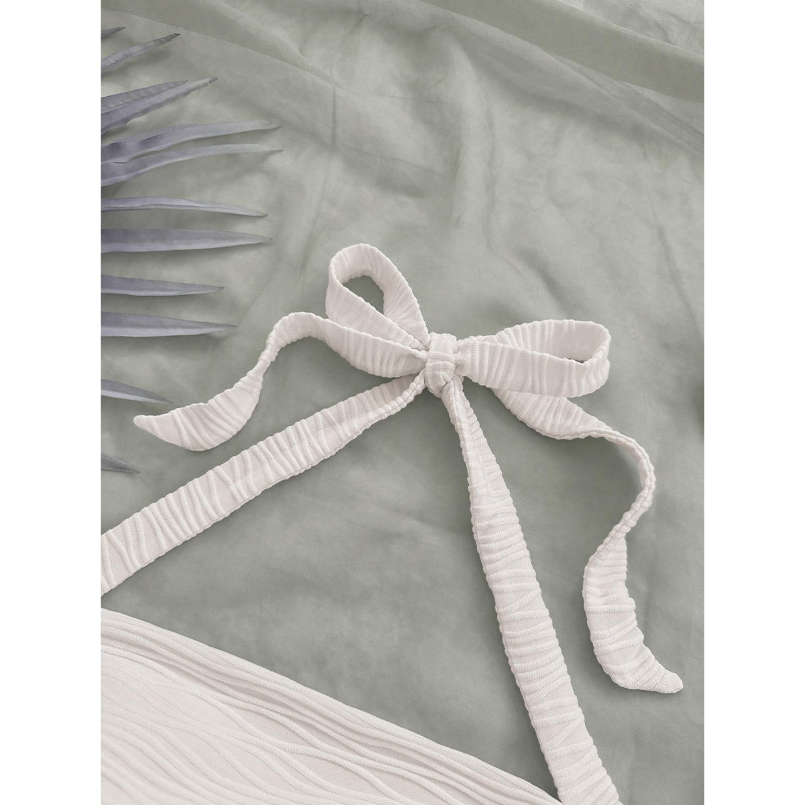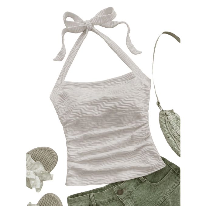 MATERIAL Crafted from lightweight polyester fabric with subtle stretch, offering a soft skin-friendly texture. The ruched surface design enhances breathability while creating visual depth. DESIGN Provocative Silhouette: Adjustable halter tie-neck with crisscross back straps for customizable fit and daring allure. Vertical ruching along the torso contours curves, paired with a cropped length (14" from neckline). Slim-fit cut hugs the body without restrictive tightness. OCCASIONS Beach Glam: Layer over bikinis with sarongs for poolside lounging. Nightlife Edge: Style with metallic skirts and chokers for clubs/parties. Daily Chic: Pair with high-waisted jeans and cardigans for brunch dates. COLOR OPTIONS Blush Pink: Romantic hue for feminine summer looks. Crisp White: Versatile neutral for layered outfits. FIT NOTES True-to-size bodycon fit; refer to size chart for bust/waist/hip measurements. Adjustable neck ties accommodate chest sizes 32"-38". STYLING TIPS Highlight the ruching with knotted belts at the waist. Contrast the cropped length with oversized blazers for urban contrast. Accessorize with anklets and strappy sandals for beach-to-street transitions. CARE INSTRUCTIONS Hand wash cold inside out. Do not bleach. Lay flat to dry; reshape ruching while damp. Iron on low heat if needed. PACKAGE INCLUDES 1 * Ruched halter crop top (color selected).