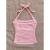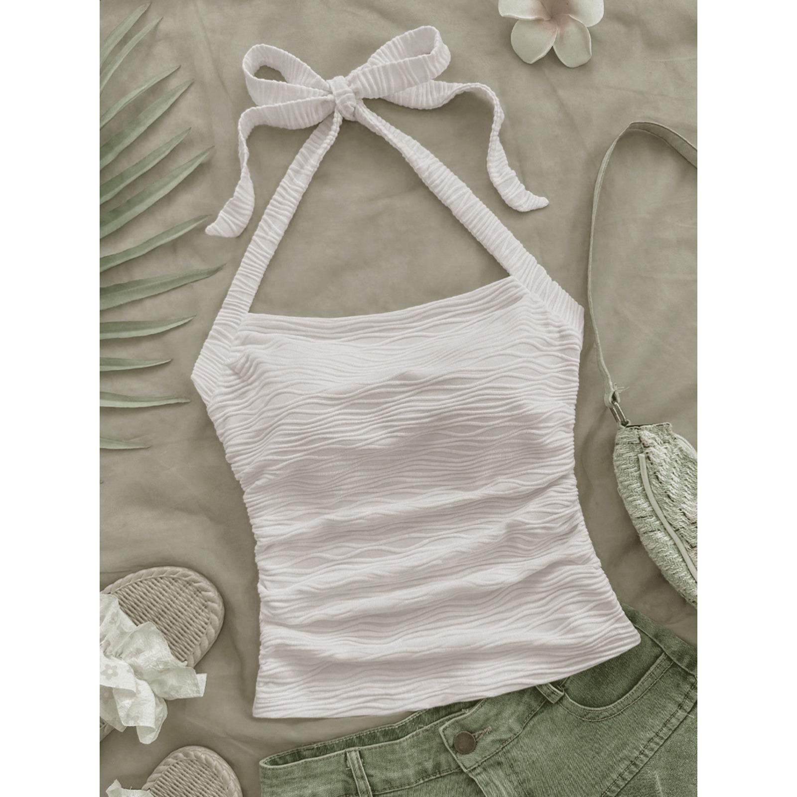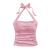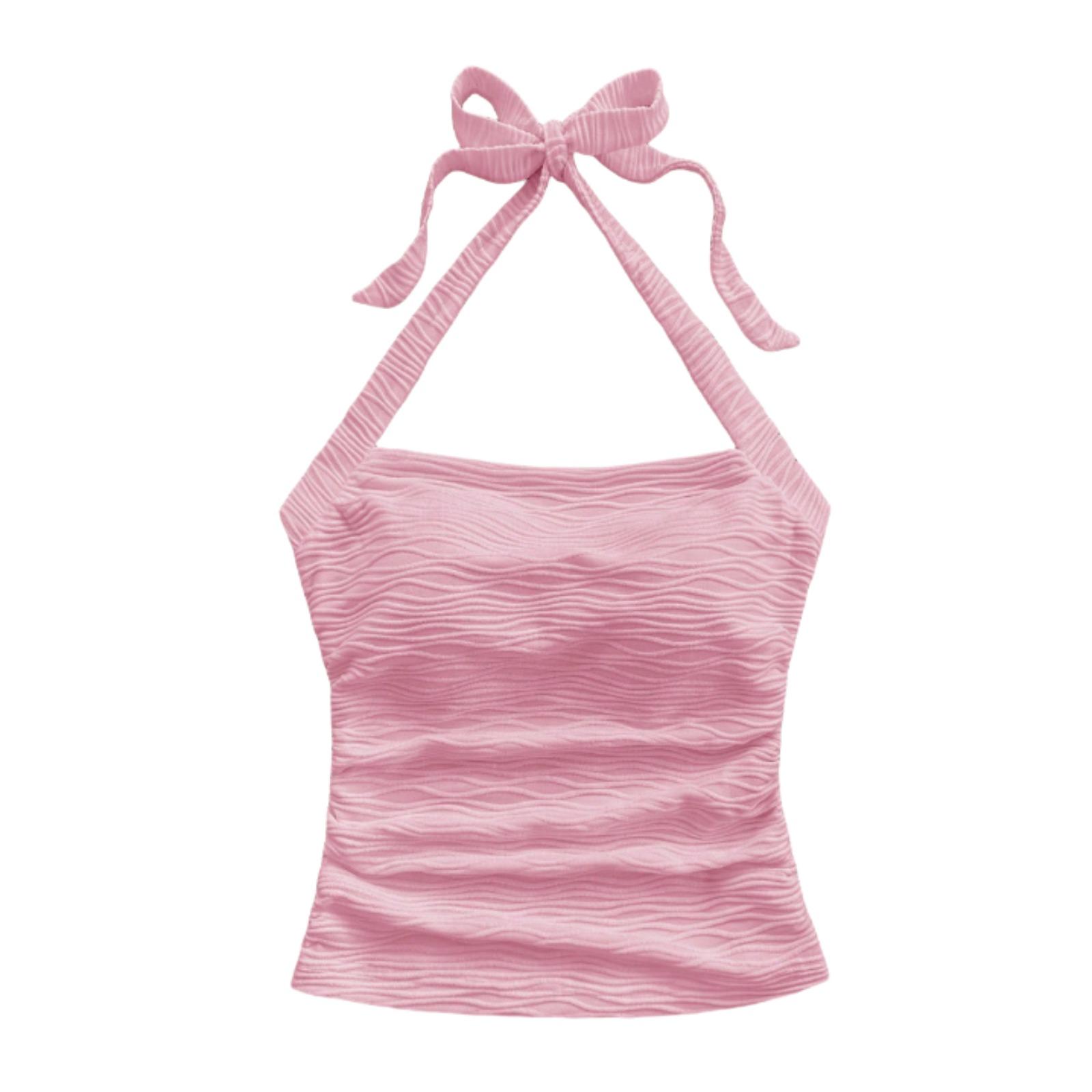 Women's Ruched Halter Tie-Neck Crop Top 2025 Summer Slim Fit Sleeveless Polyester Cami Shirt Pink/White Y2K Bodycon Beachwear