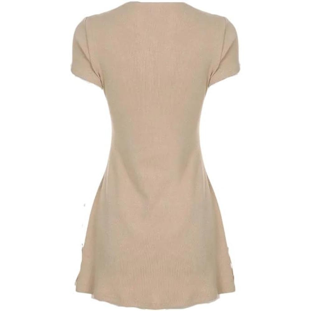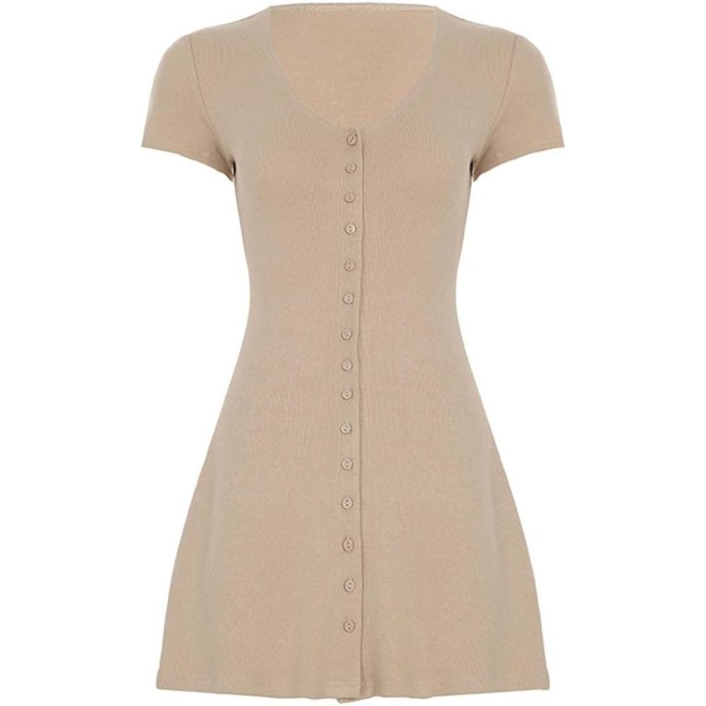 Material: This plunge v neck short sleeve mini dress is super soft and breathable Knitted + polyester + spandex fabric,stretchy and skin-friendly,it makes you look elegant and generous Features: This elasticity single breasted knit short dress feature button-up front,sexy deep v neck ribbed knit cocktail party dress Occasion: This 90s relaxed button down knitted short dress for women. Perfect for shopping,daily life,photo shoot,halloween etc.Wear our 2025 trendy fashion night out club dress for women to show your cute and sexy side. As a gift, it is the best choice Match: This Y2K single breasted flowy party club dress for women is easy to pair with high heels,flats,sandals,underarm bags,necklace and sunglasses,making you chic and beautiful,fashionable and elegant