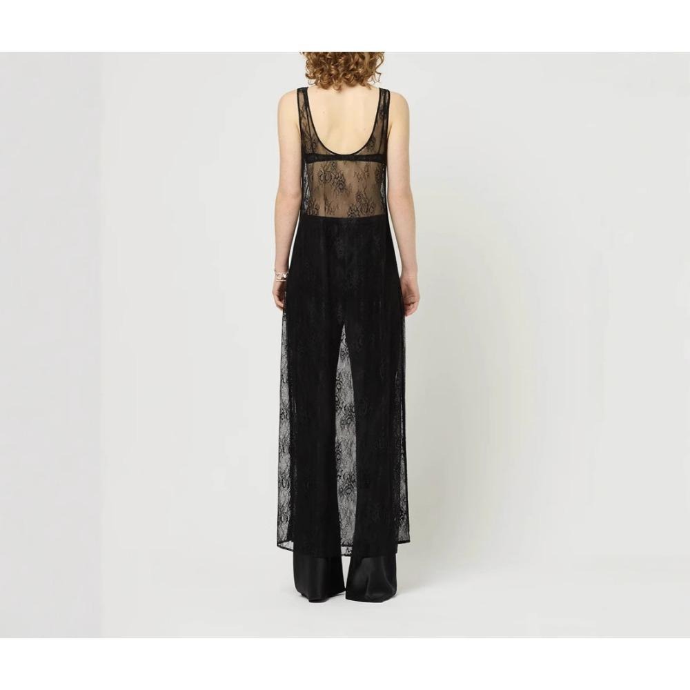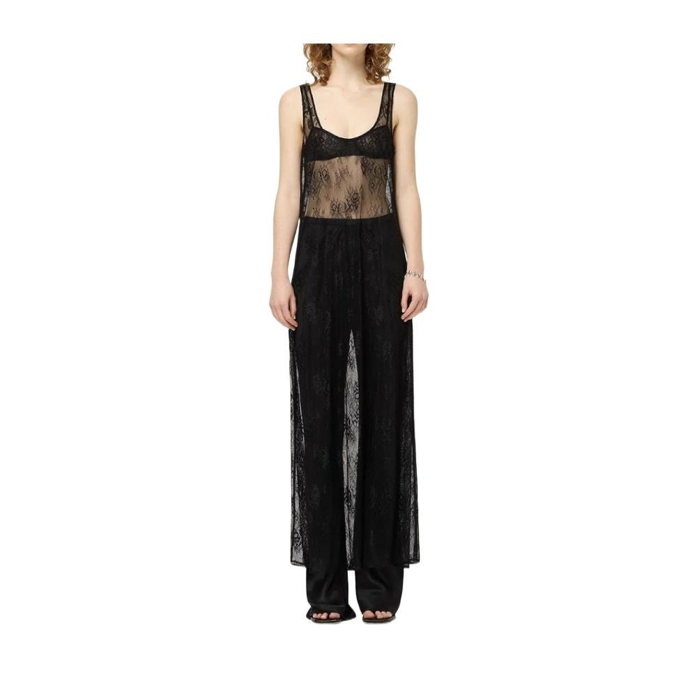 Women Sleeveless Black Dress Y2k Sexy See Through Lace Blouse Dress for Spring/Summer 2025
