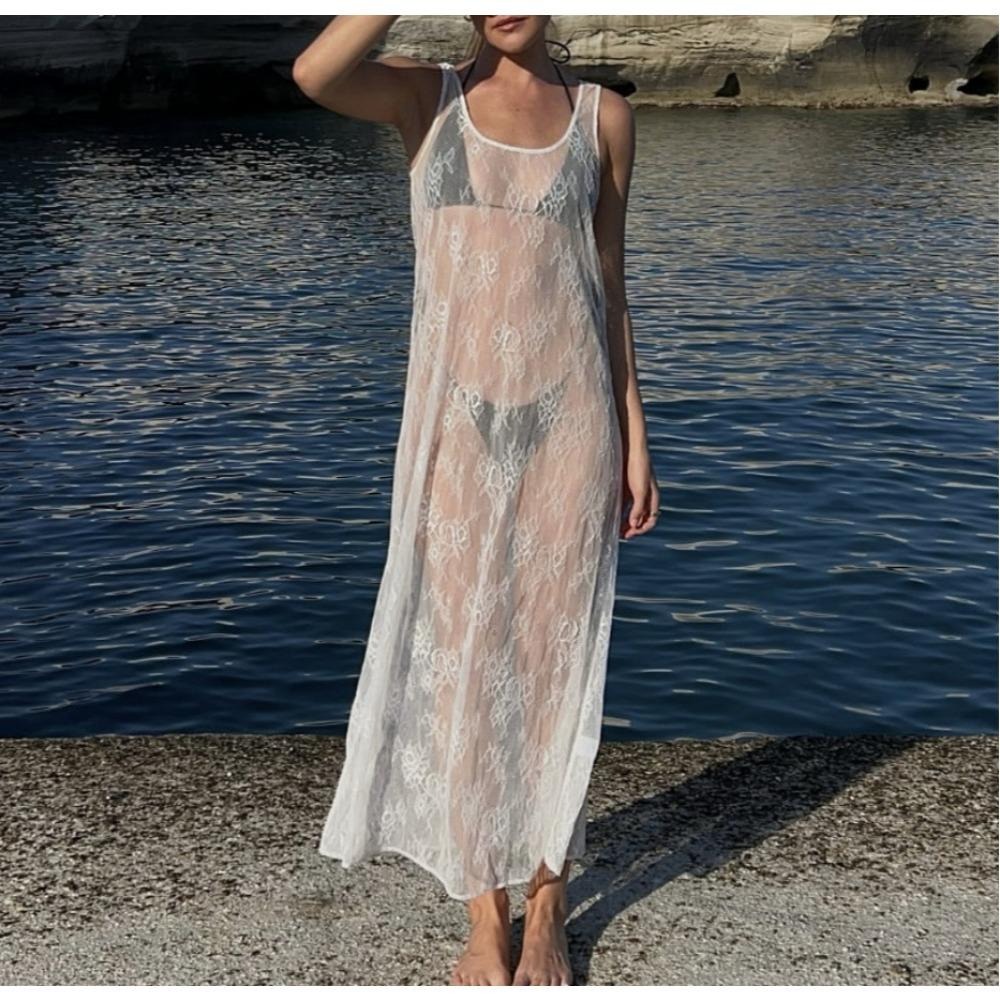 2025春夏新款欧美女装跨境热卖性感透视镂空蕾丝罩衫连衣裙
