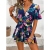 跨境外贸沙滩度假风荷叶袖交叉领腰带短款裙裤女宽松印花连体裤女