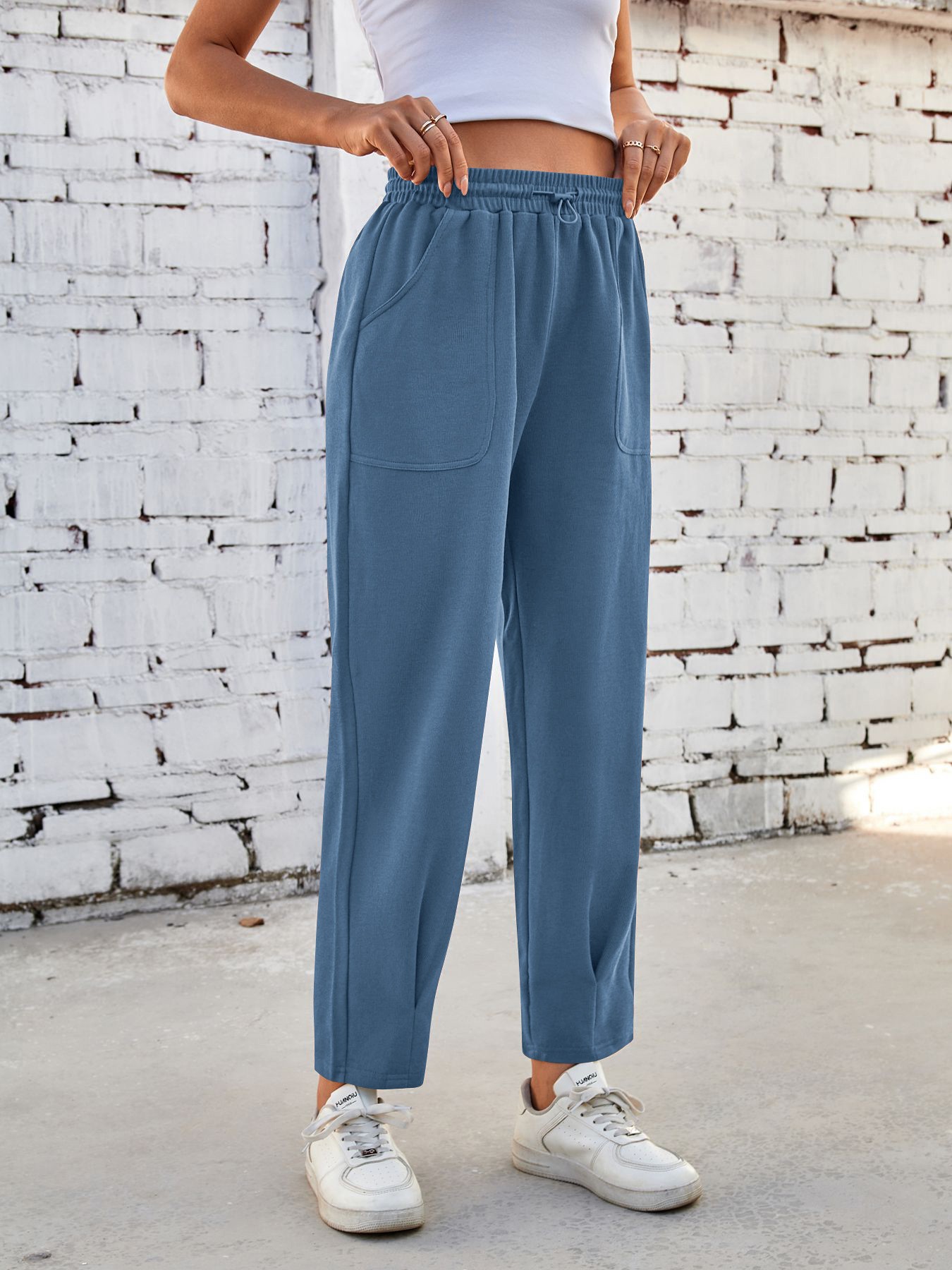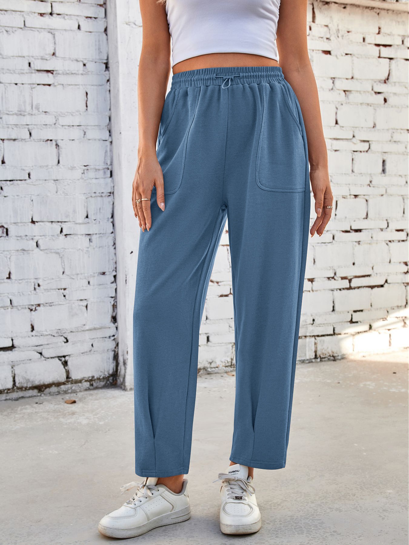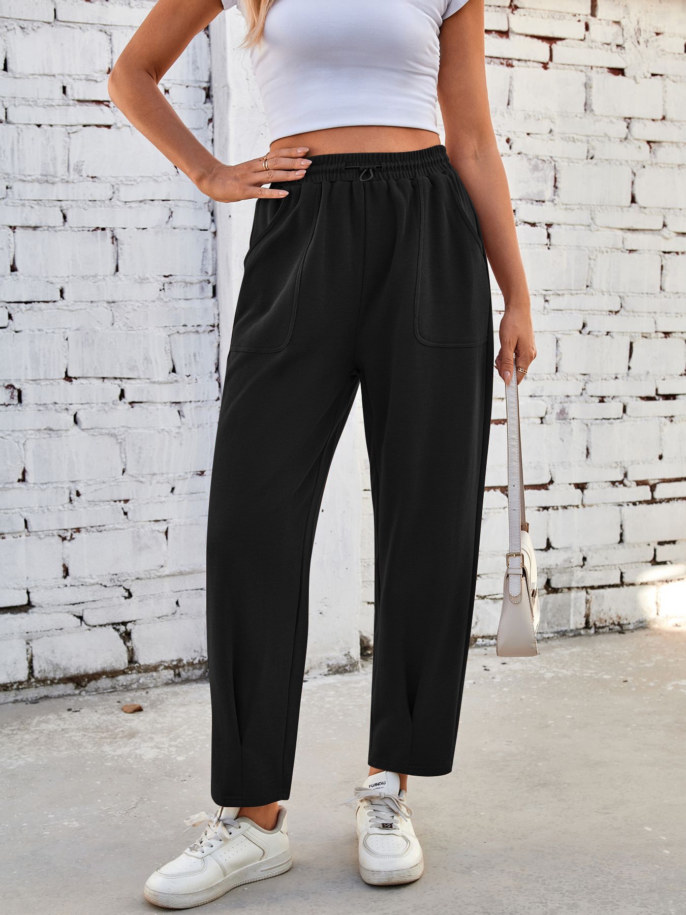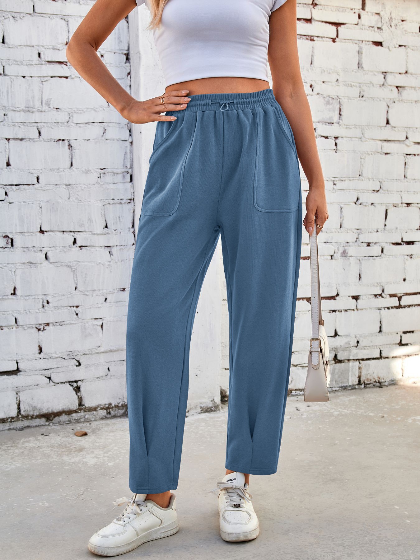 Women's Trendy Casual Solid Color Baggy Wide Leg Pants High Waisted Drawstring Waist Harem Pants with Pockets, Slim Fit Track Pants Jogger Sweatpants for Streetwear, Workout & Daily Life
