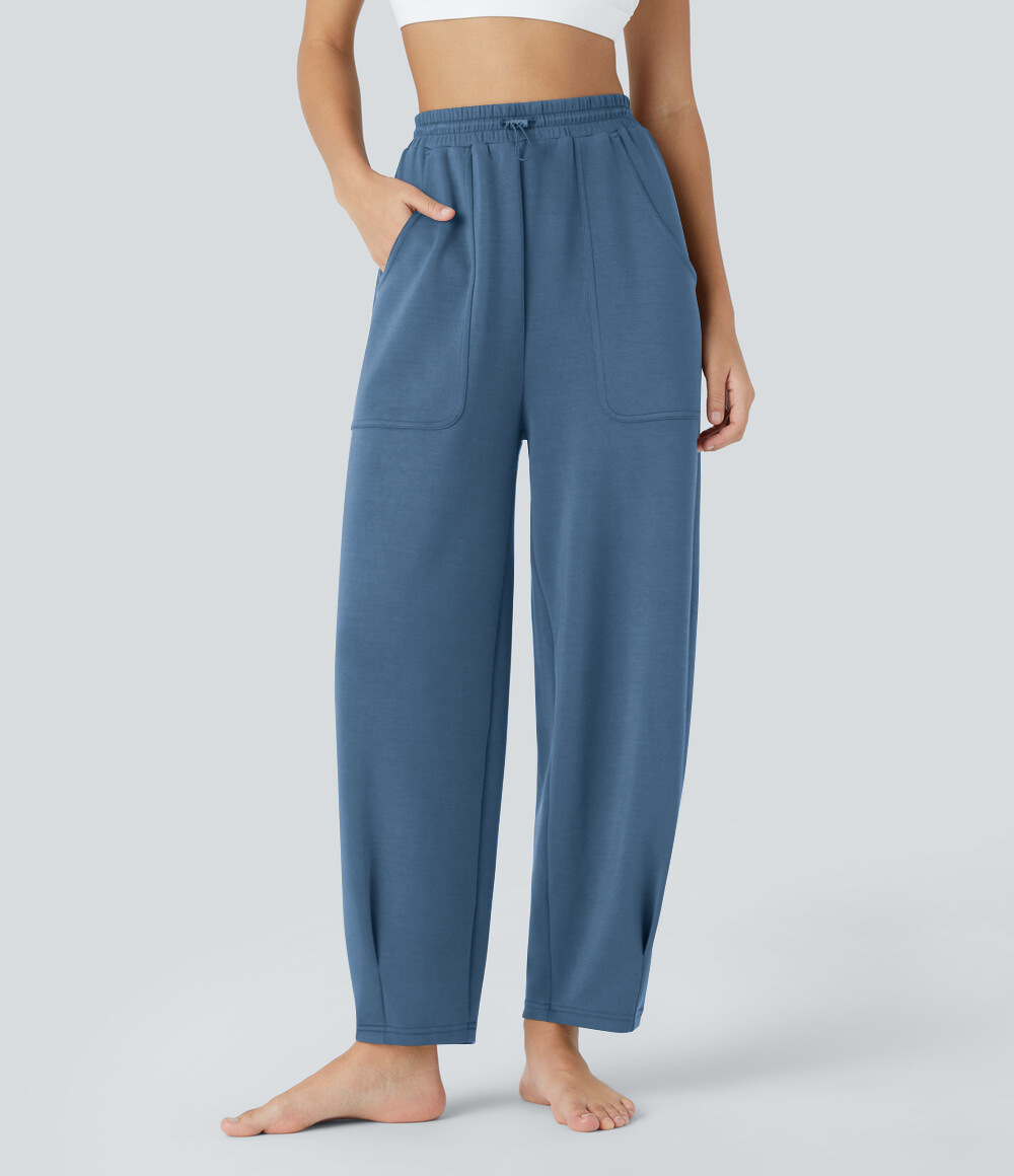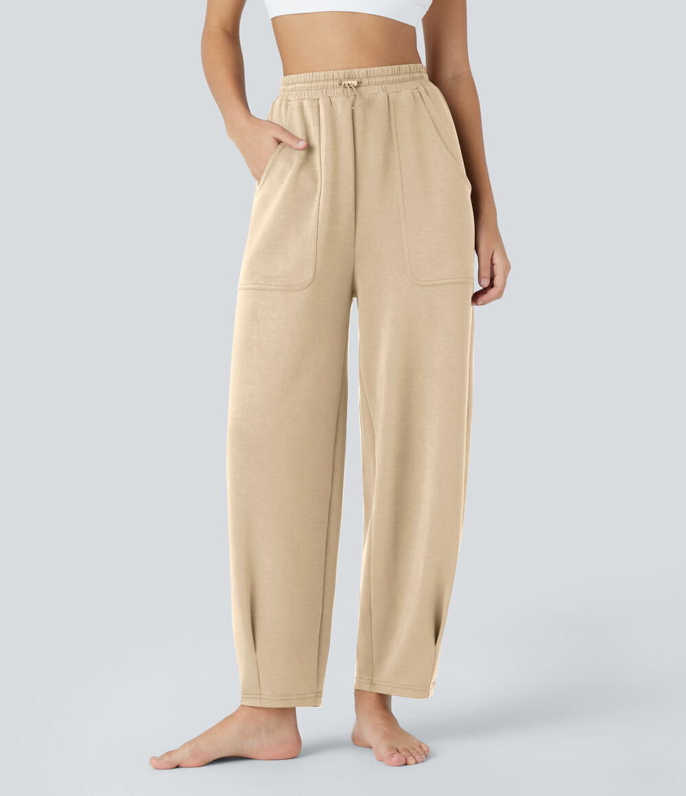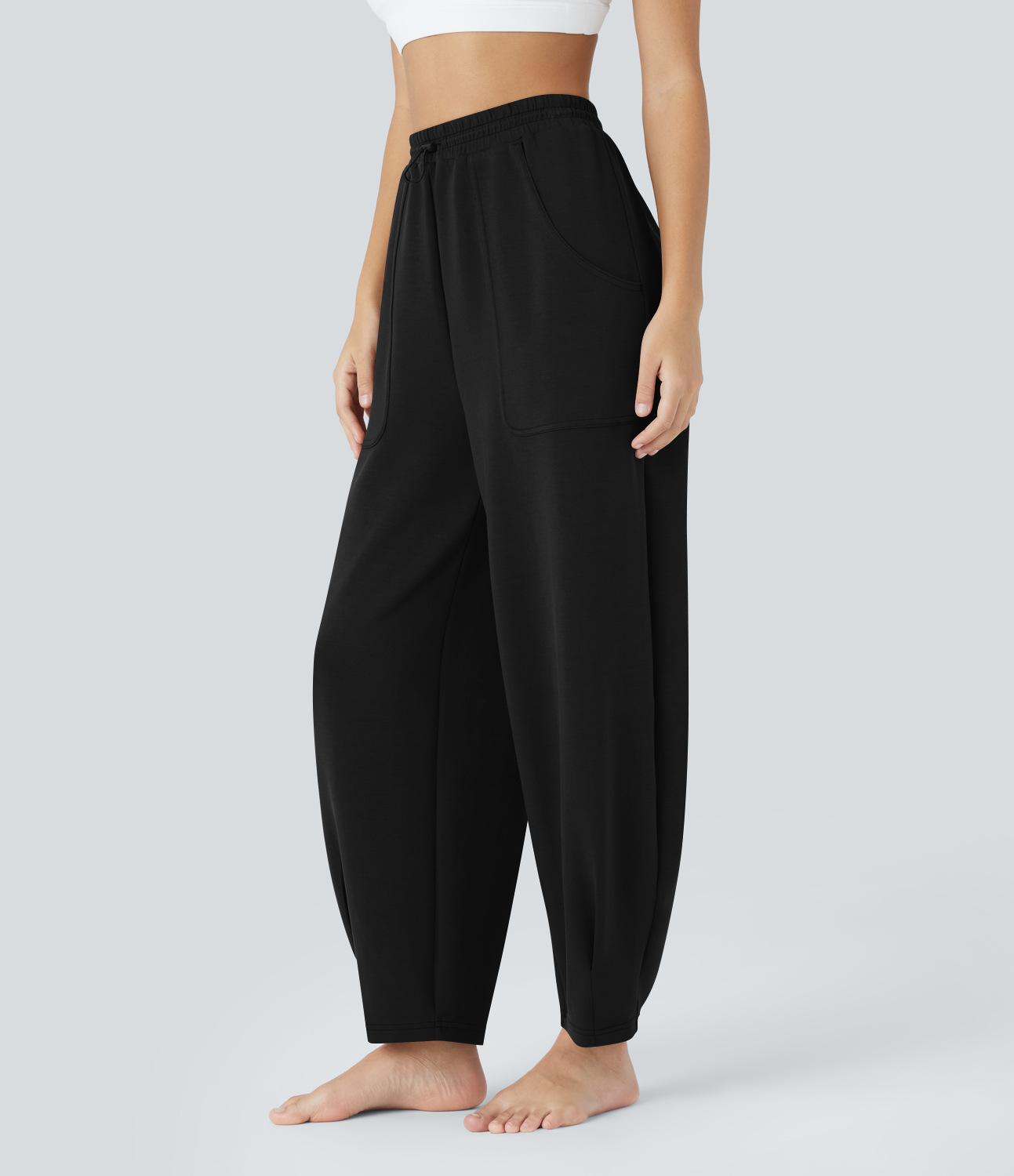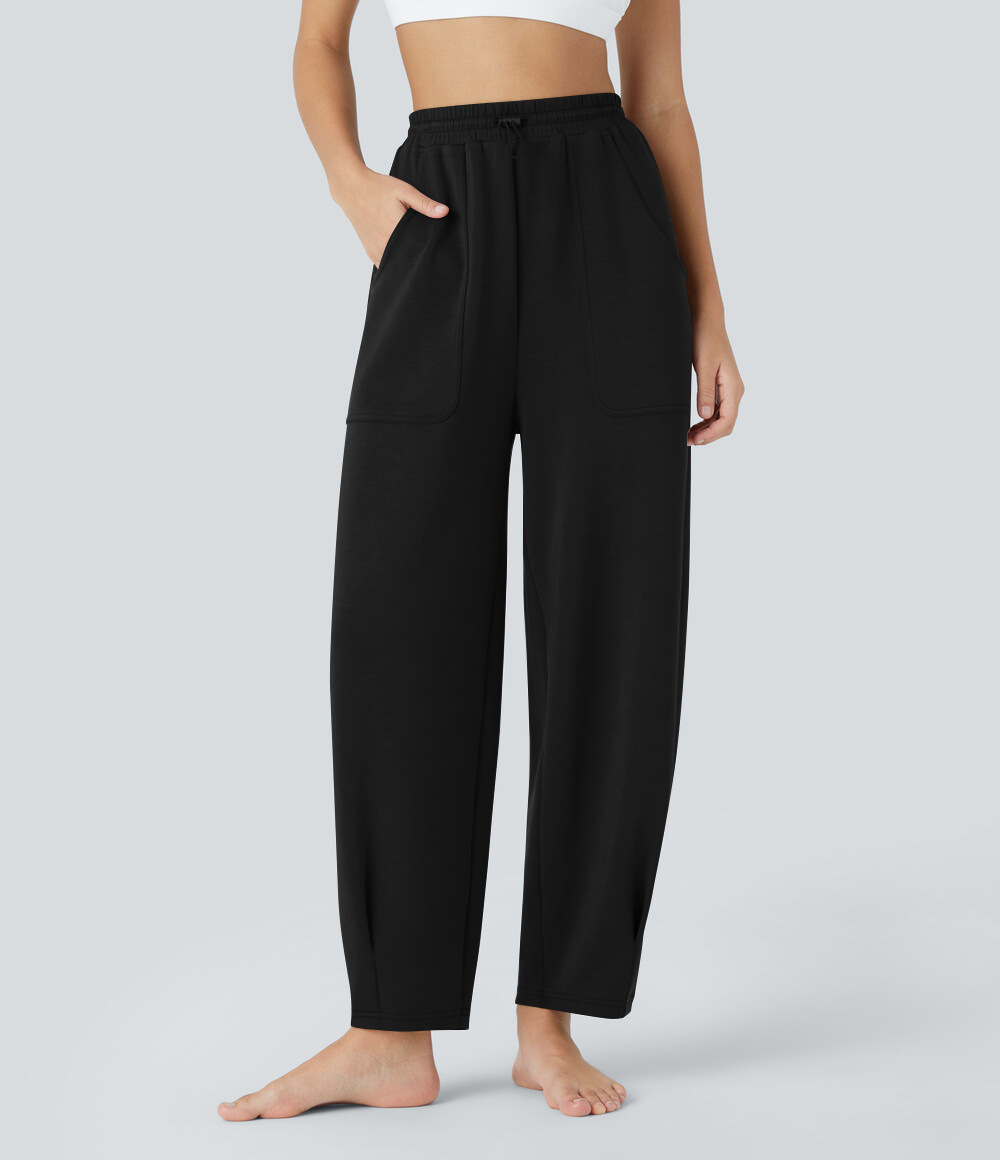 Women's Trendy Casual Solid Color Baggy Wide Leg Pants High Waisted Drawstring Waist Harem Pants with Pockets, Slim Fit Track Pants Jogger Sweatpants for Streetwear, Workout & Daily Life