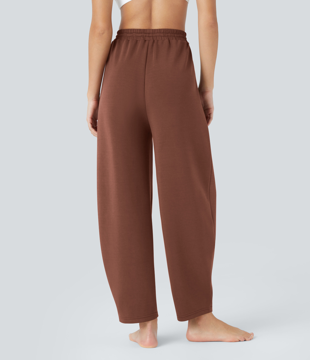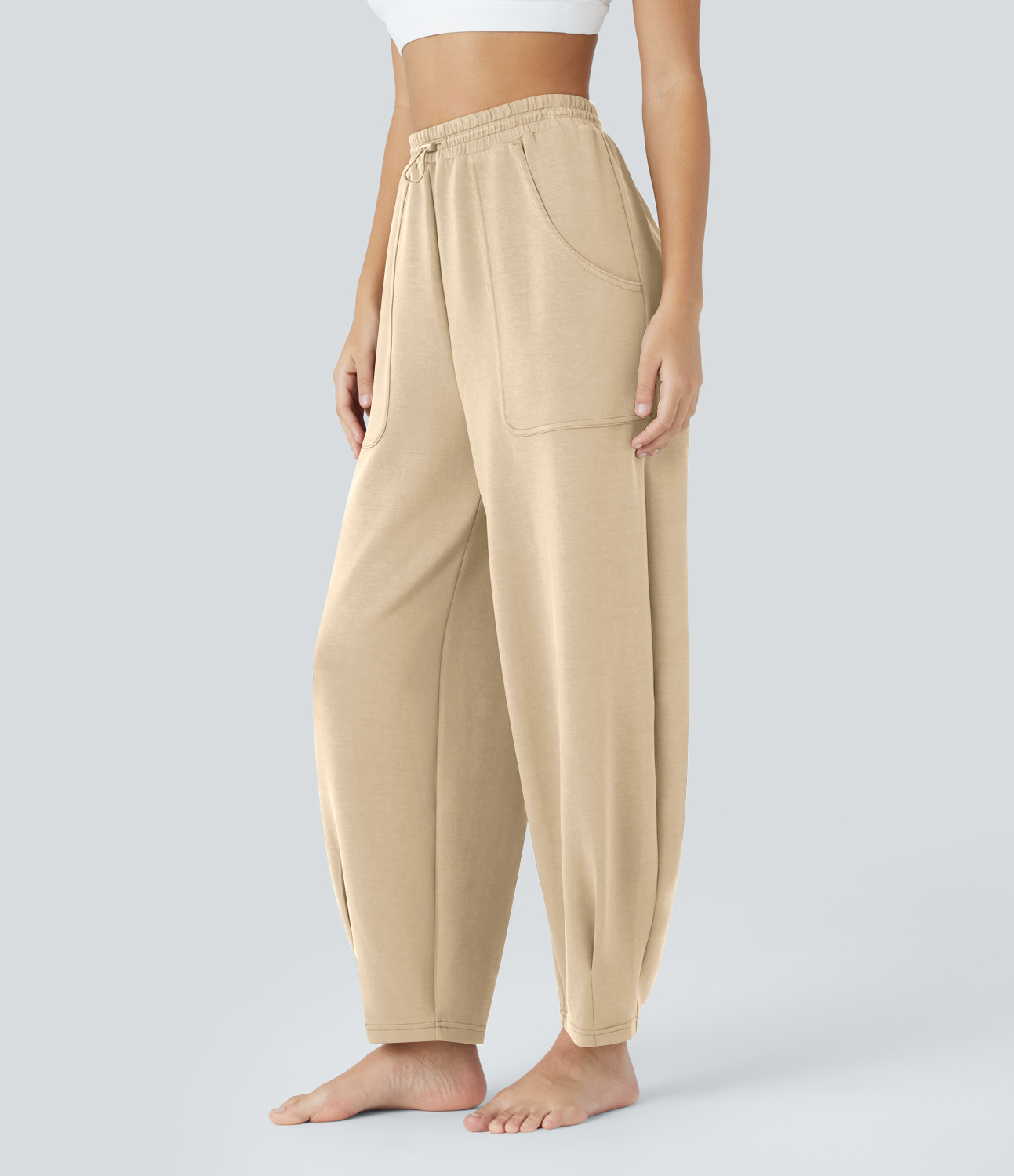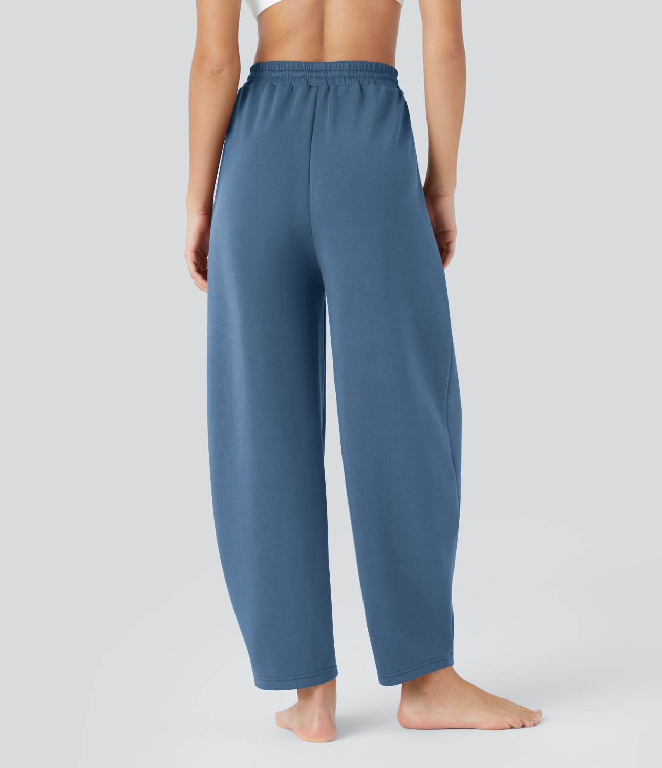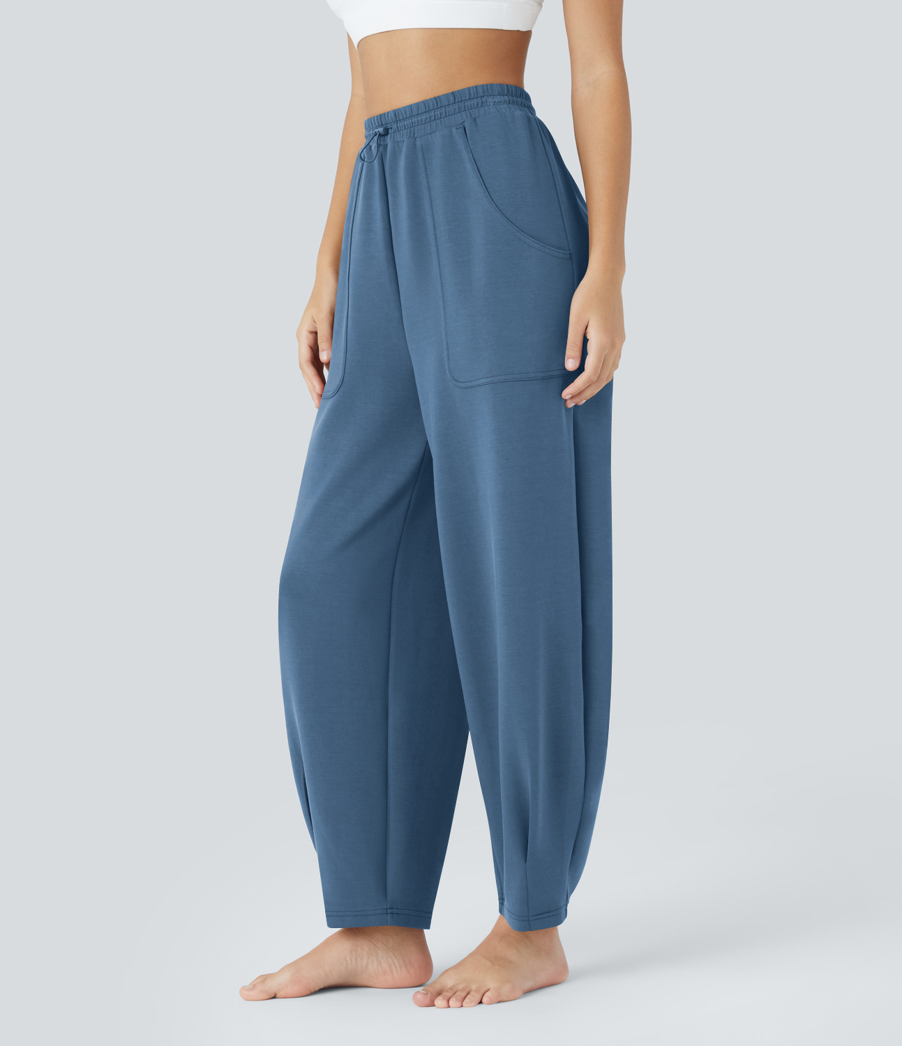 Women's Trendy Casual Solid Color Baggy Wide Leg Pants High Waisted Drawstring Waist Harem Pants with Pockets, Slim Fit Track Pants Jogger Sweatpants for Streetwear, Workout & Daily Life