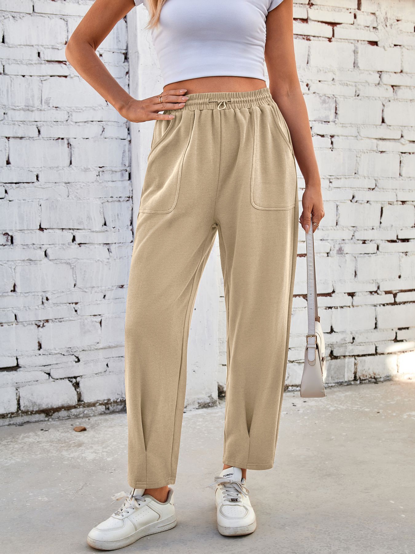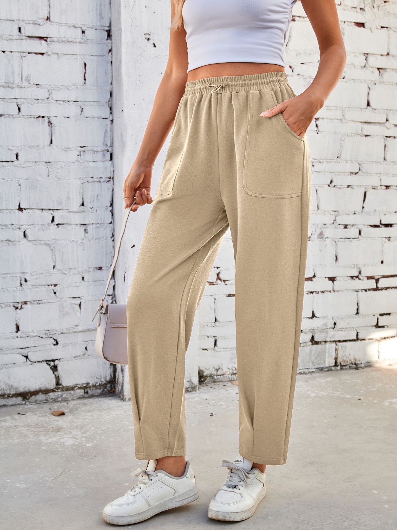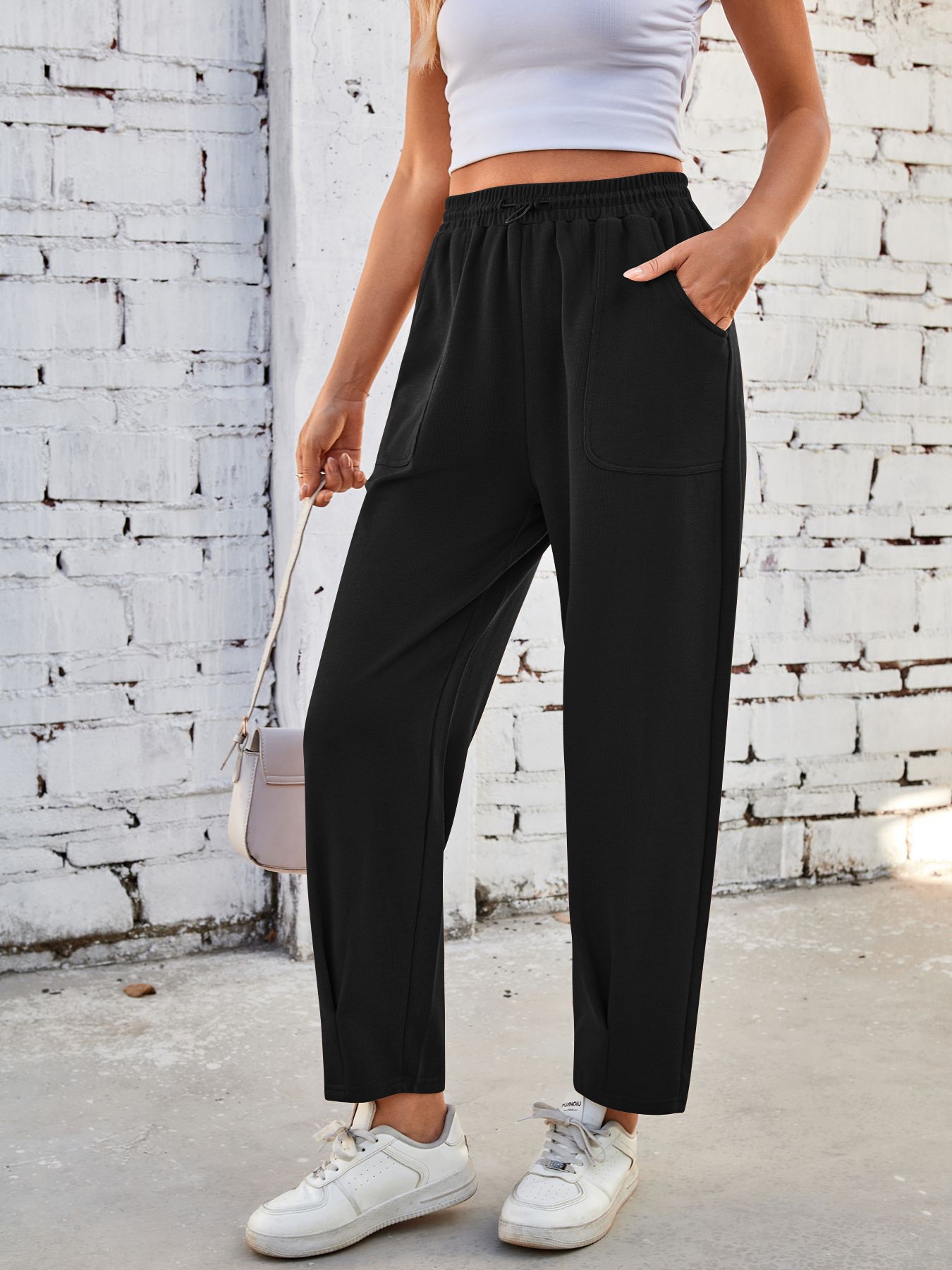 [Cotton & Spandex Material] Made from a cotton and spandex blend, these trousers are soft and comfortable to wear, with a breathable fit that moves with your body for all-day wear and an active lifestyle [Design Features] These trousers feature an adjustable drawstring waistband for a personalised fit, while the side pockets provide convenient storage for essentials. The relaxed fit and tapered leg design flatter your figure with a streamlined silhouette, and the plain design adds timeless versatility to your wardrobe