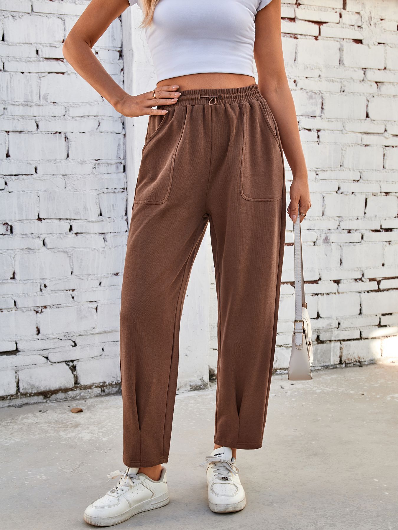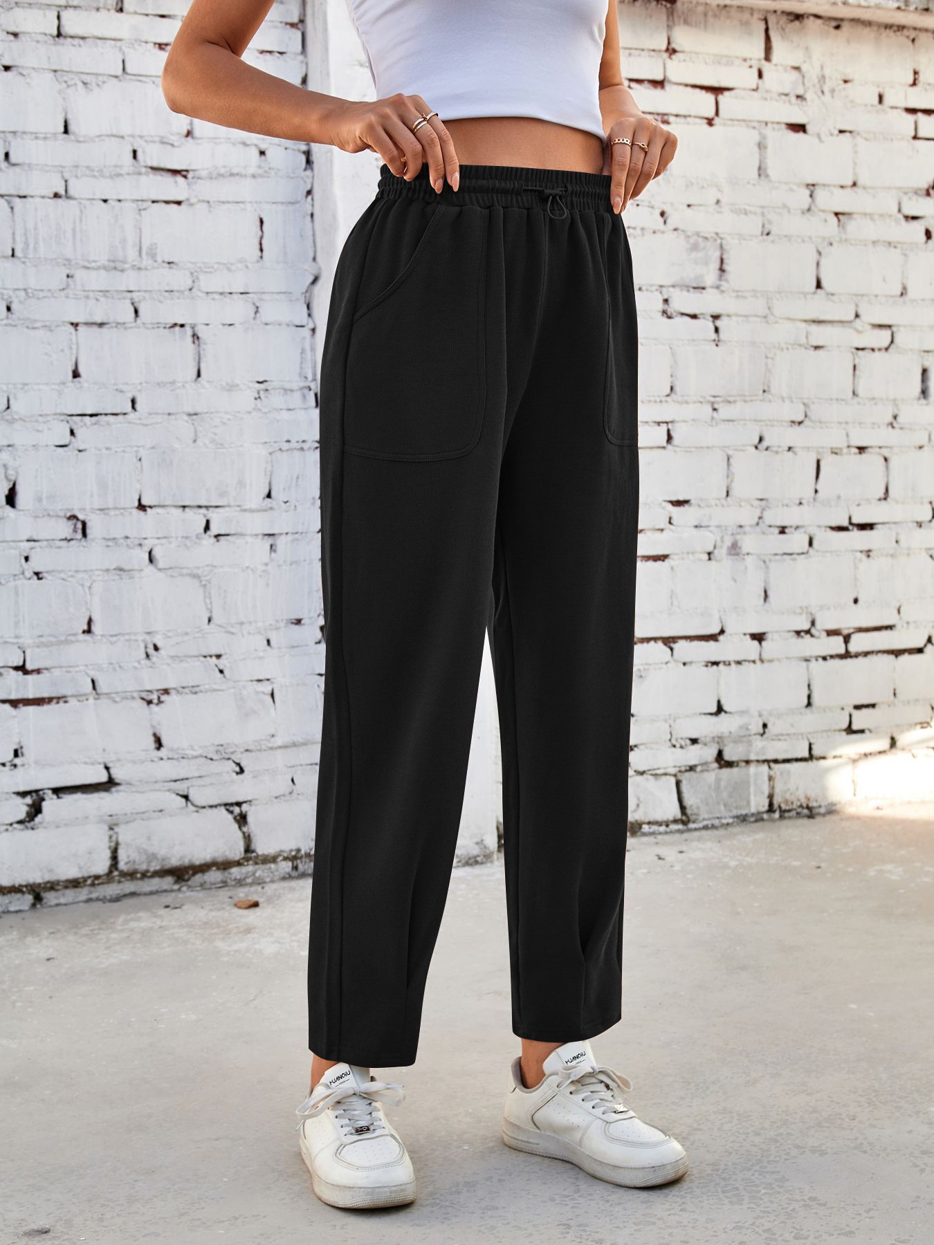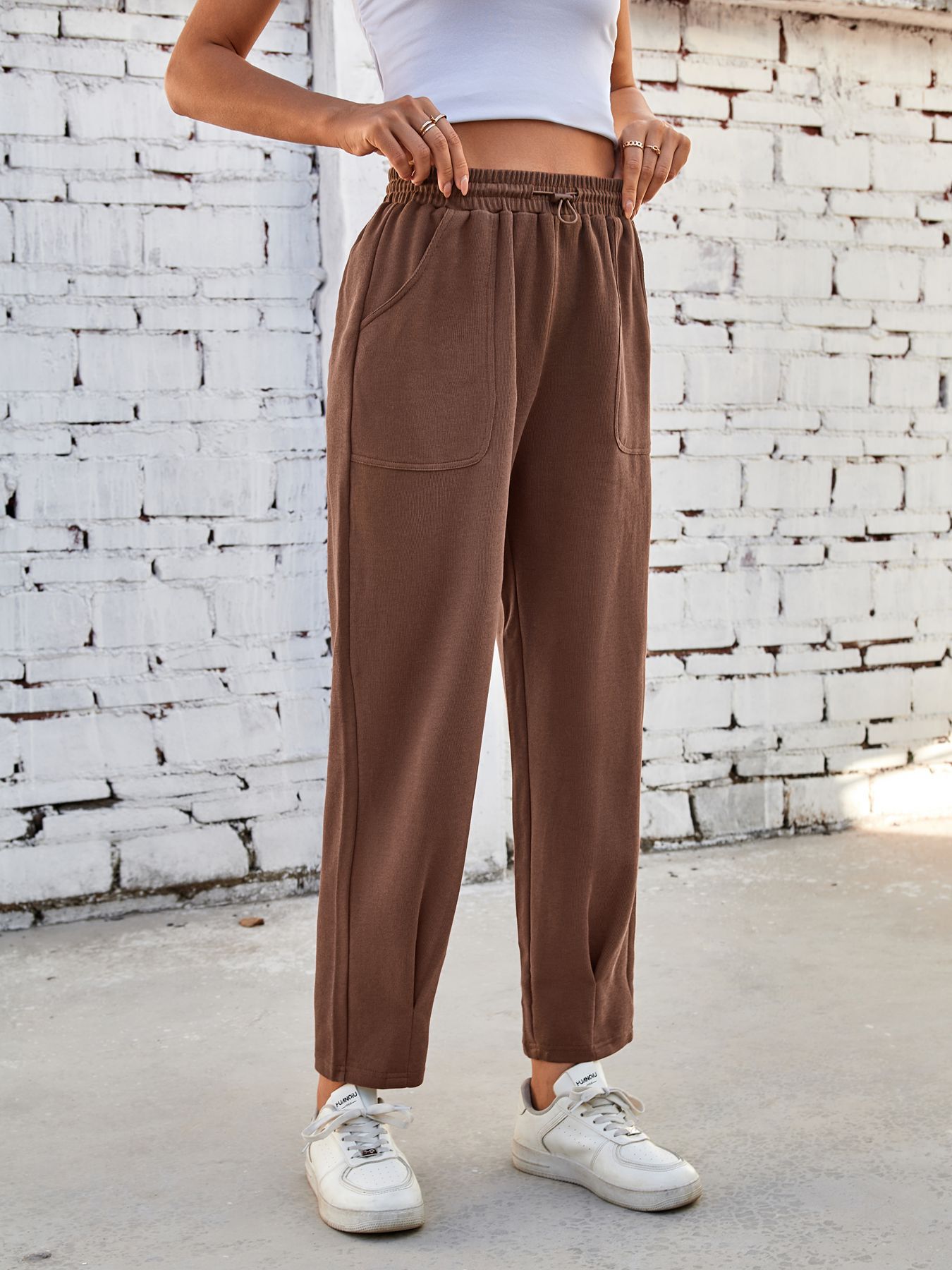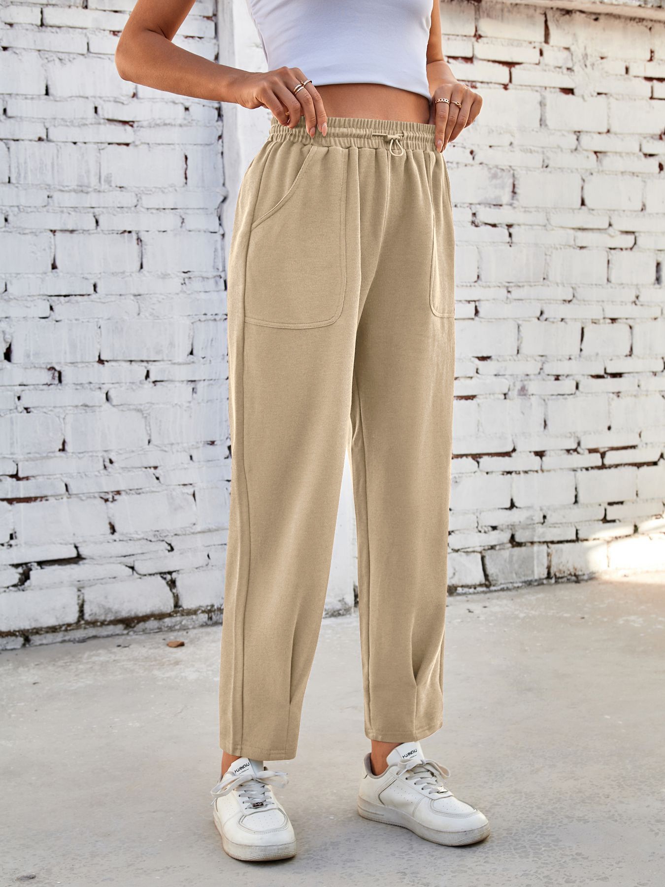 [Cotton & Spandex Material] Made from a cotton and spandex blend, these trousers are soft and comfortable to wear, with a breathable fit that moves with your body for all-day wear and an active lifestyle [Design Features] These trousers feature an adjustable drawstring waistband for a personalised fit, while the side pockets provide convenient storage for essentials. The relaxed fit and tapered leg design flatter your figure with a streamlined silhouette, and the plain design adds timeless versatility to your wardrobe