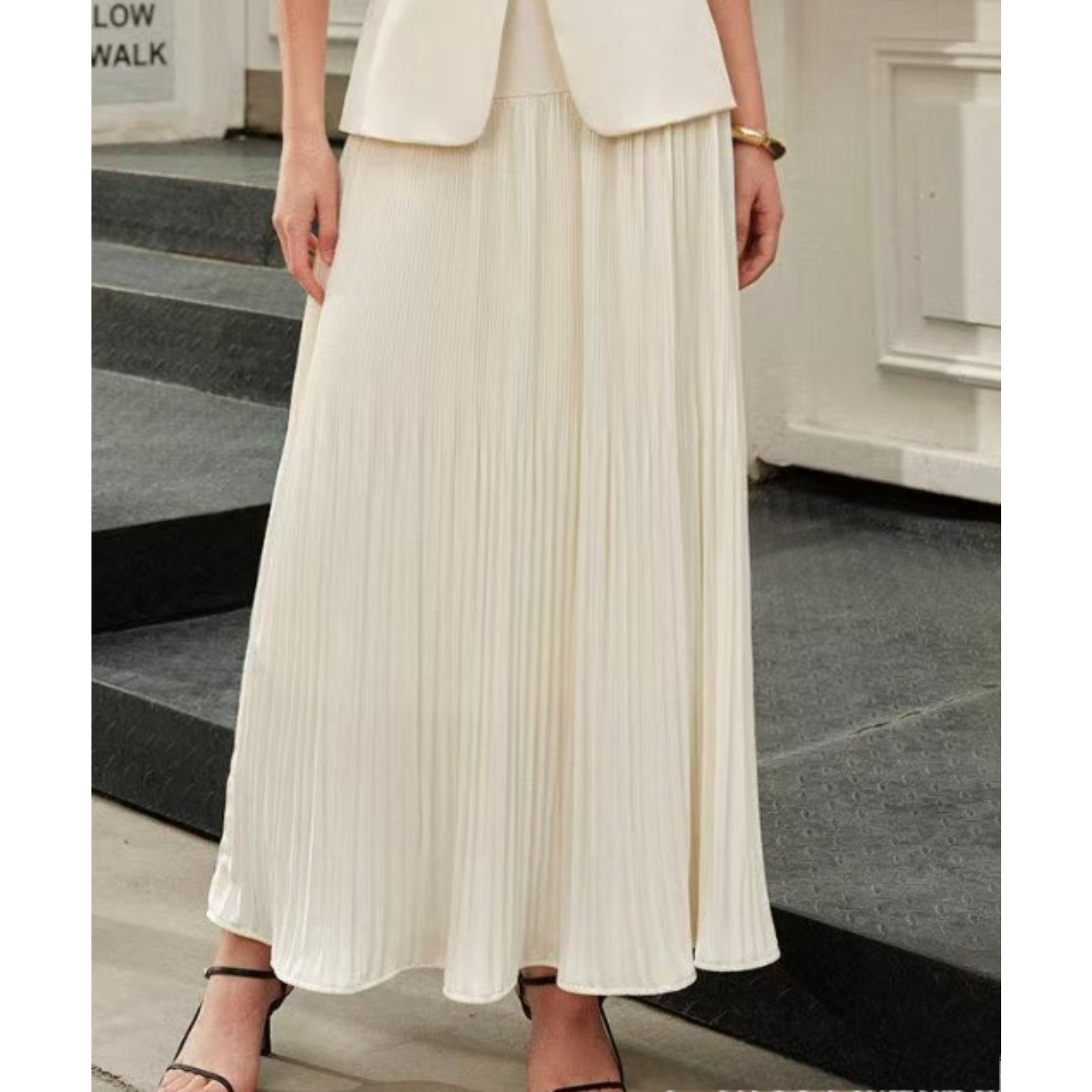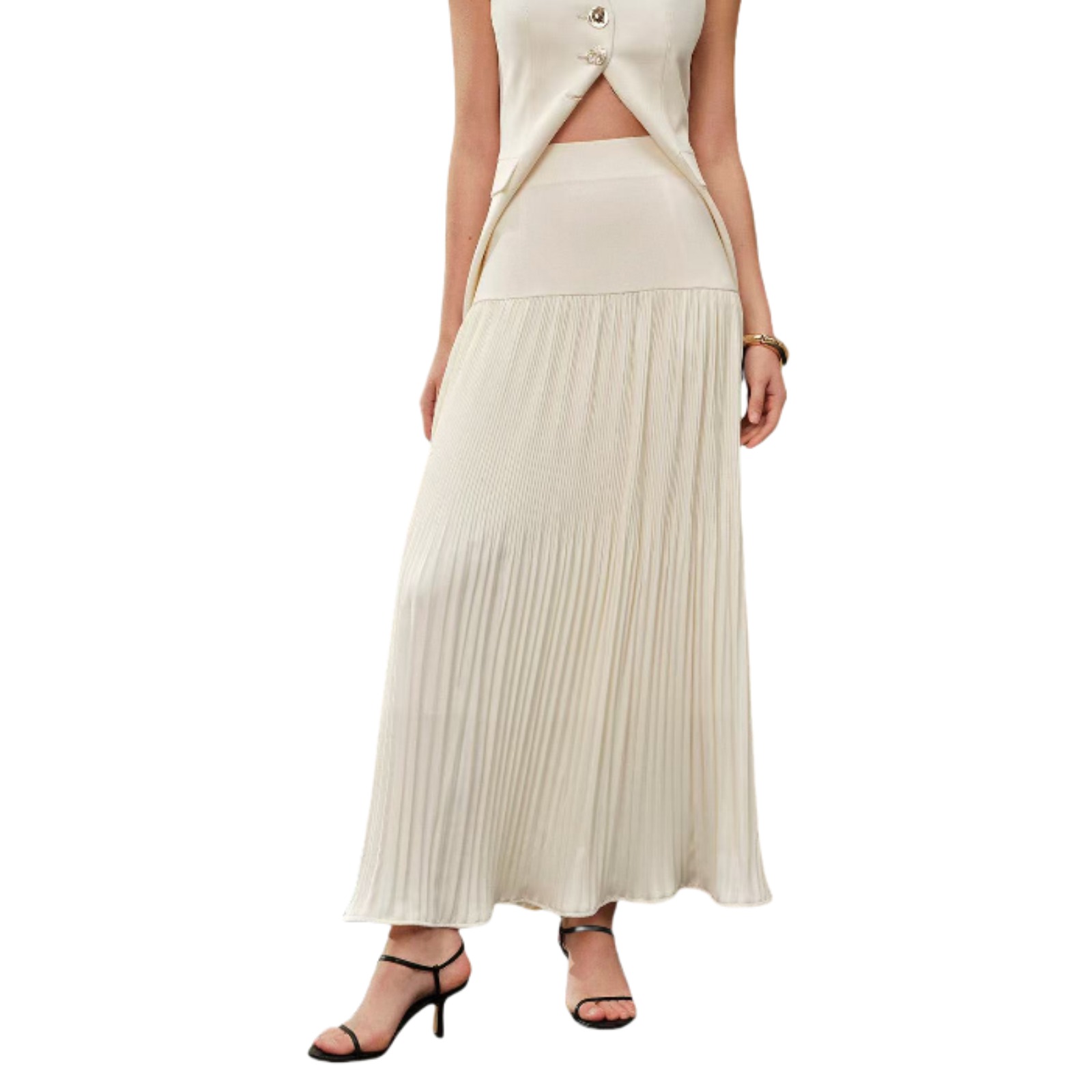 Women's Pleated Panel Midi Skirt Solid Color Polyester Office Skirt High Waist Casual Elegant Commute Skirt Spring Summer