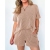 欧美女装2024亚马逊独立站短袖波浪纹圆领上衣 松紧腰短裤两件套