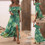 Women's New Summer Beach Vacation Style Belted Side-Slit Ruffled Floral Print Maxi Dress