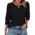 Women's Summer Solid Button 3/4 Sleeve Round Neck Tops Soft Breathable Trendy T-Shirt Dressy Casual Loose Fit Blouses Tops for Work Office, Beach Vacation & Daily Wear