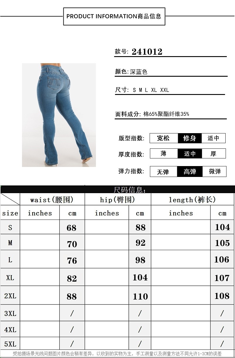 [Cotton and Polyester Blend Material] This premium cotton-polyester fabric is breathable and stretchy, making it perfect for spring. This blend offers a soft, lightweight feel while retaining its shape and resisting wrinkles to ensure all-day comfort [Design Features] These high-waisted, bootcut jeans feature a flattering single-row, three-button closure. The micro-flare silhouette elongates the legs and enhances the curves, while the high elasticity provides a sculpted lift. The vintage washed blue finish adds retro charm with natural fading effects, creating a timeless, worn-in look