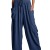 Women's Tie Waist Elastic High Waisted Ruffled Wide Leg Pants with Two Large Pockets Loose Casual Linen Cotton Trousers