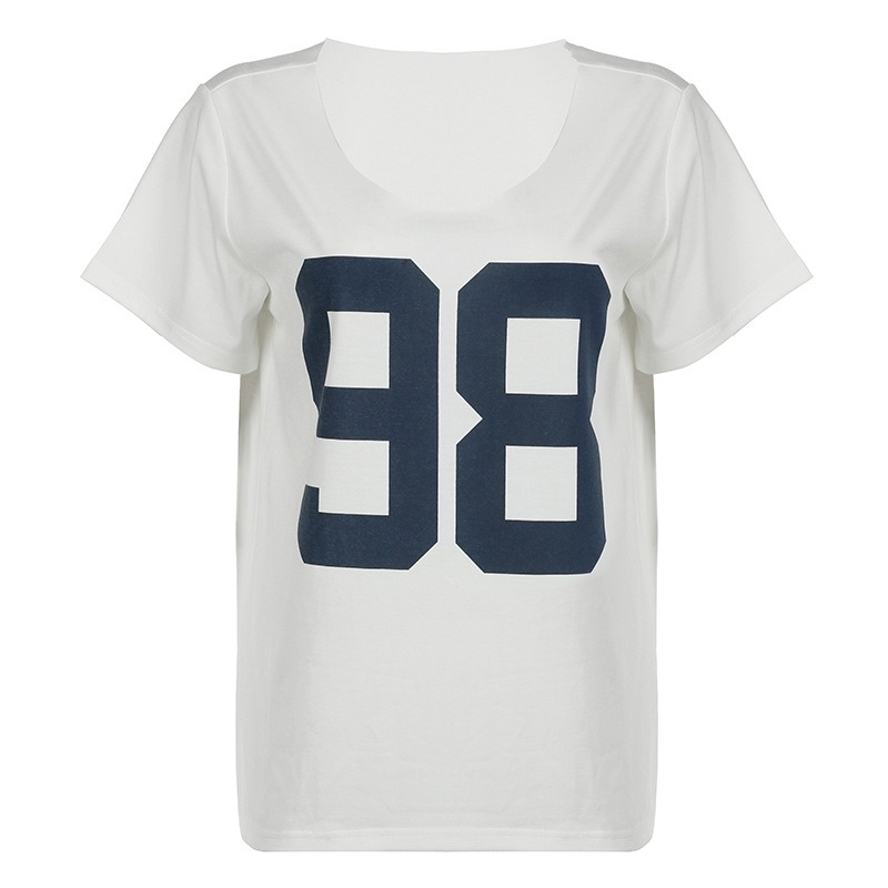 宽松休闲风数字印花半袖T恤夏季时尚新款欧美个性女装上衣