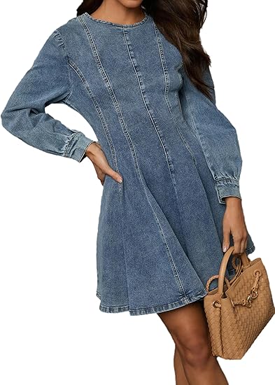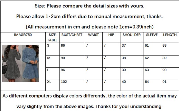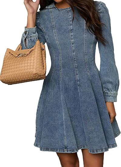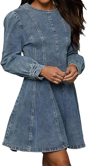 【优质材质】这款女士牛仔连衣裙采用柔软且亲肤的牛仔涤纶棉面料制成,轻盈透气,能给您带来舒适的穿着体验。 【独特设计】这款可爱的牛仔连衣裙,女士长袖牛仔连衣裙具有长袖设计,使其更具性感与优雅气质。高腰牛仔连衣裙能够勾勒出您完美的身材。这款短款牛仔连衣裙非常适合那些想要时刻保持魅力的女性。 【多种场合适用】时尚又休闲,这款牛仔连衣裙几乎适用于所有场合,如日常休闲、办公室、学校、婚礼、派对、海滩、户外、生日、约会、度假、毕业、返校等。它是您日常生活不可或缺的一部分。 【轻松搭配】这款时尚且多功能的牛仔迷你裙,非常适合与高跟鞋、凉鞋、平底鞋、时尚靴子等搭配。天气较凉时,可搭配针织衫和外套。打造时尚造型。 【衣物护理】这款 2025 年流行的牛仔连衣裙可手洗和机洗。不同颜色的衣物需分开洗涤。勿漂白,晾干,低温熨烫。在下单之前,请先测量一下您的胸围,并参照产品图片中的尺码表,而非亚马逊上的尺码表。