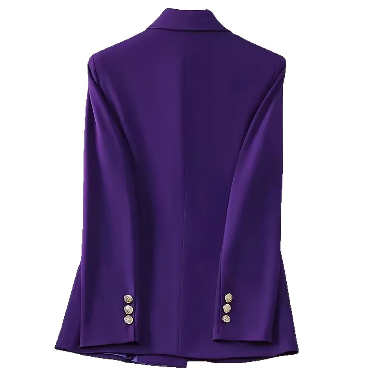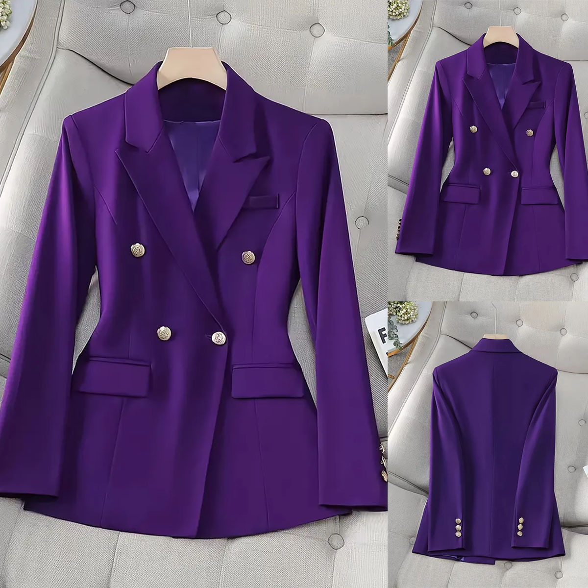 [Polyester Material] This blazer is crafted from high-quality polyester, offering a smooth, lightweight feel with a subtle drape that exudes sophistication. The fabric is wrinkle-resistant and durable, maintaining a crisp, polished look throughout busy days, making it ideal for professional settings [Design Features] It features a classic notch lapel and long sleeves, paired with a tailored, fitted design that flatters the silhouette. The solid colour enhances its versatility, while the double-breasted button closure adds a timeless touch. The overall design embodies an elegant, minimalist style, balancing professionalism with modern charm