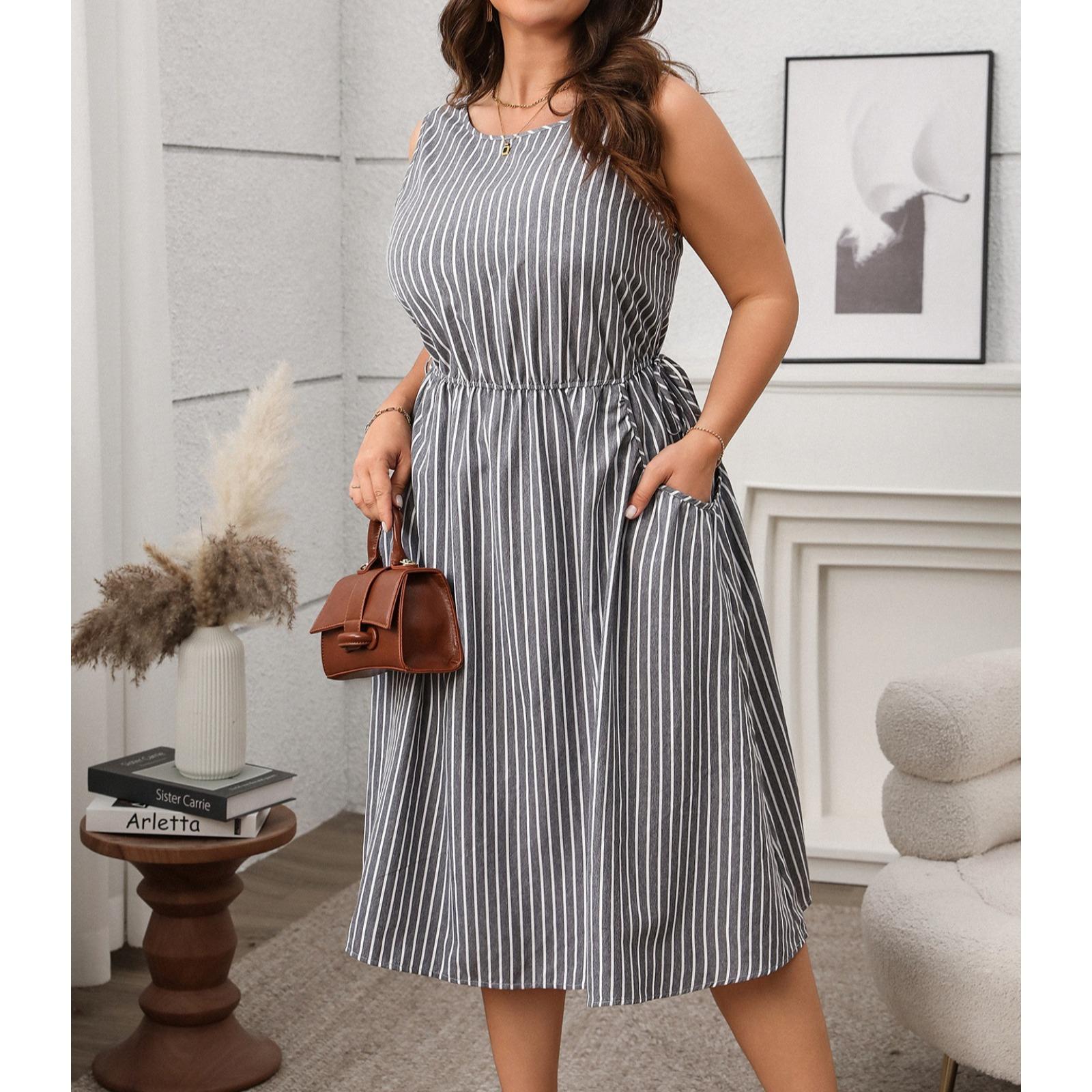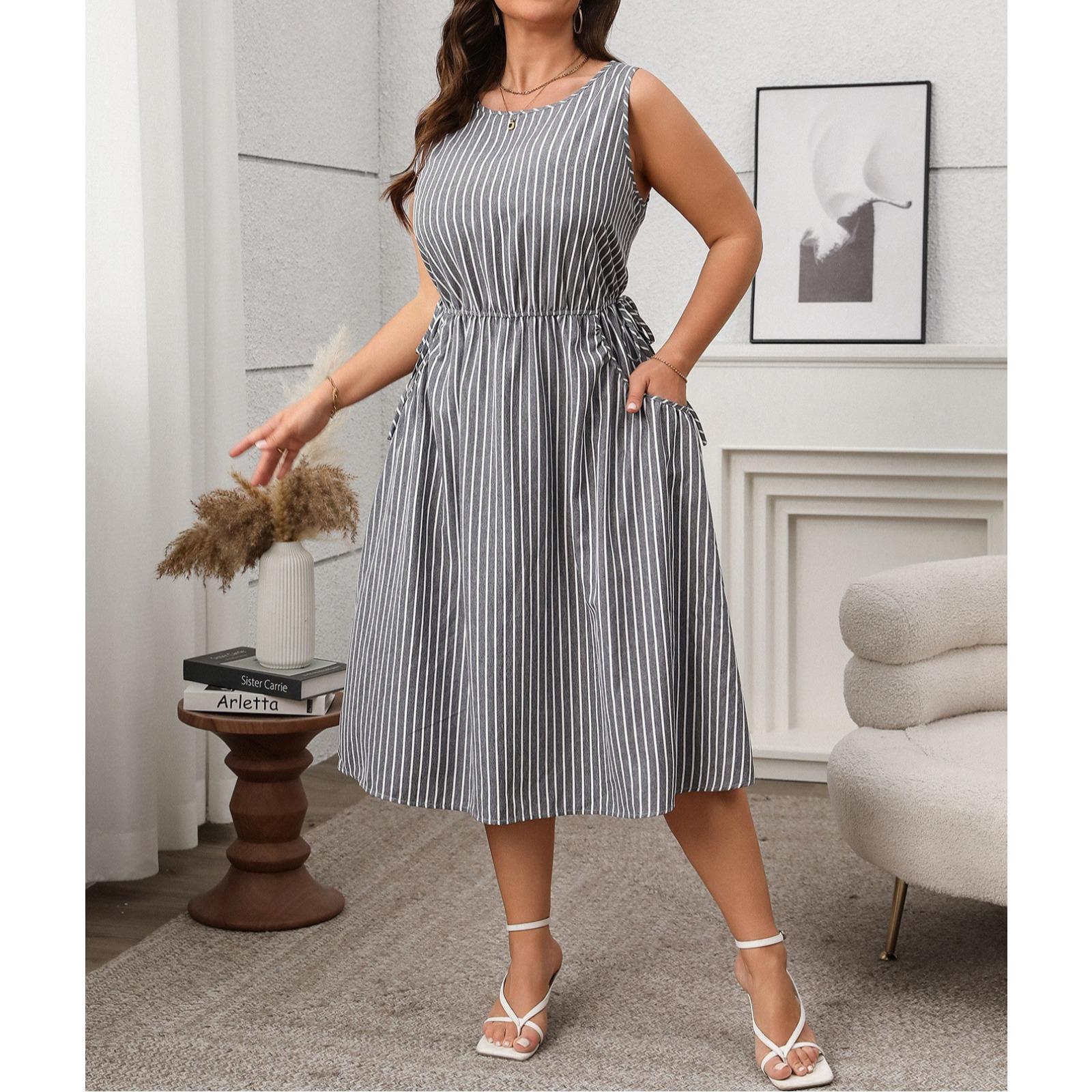 2025 Women's Color Block Stripe Sleeveless Maxi Dress with Pockets A-Line Casual Sundress Plus Size Comfortable Polyester Dress for Home Office Vacation